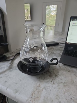- Vintage Pyrex 1980 Clear Glass Hurricane Globe/Shade Snowflake Design candle