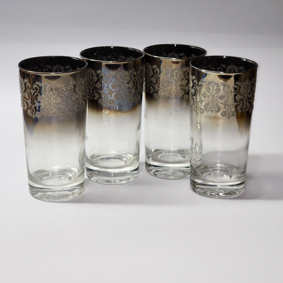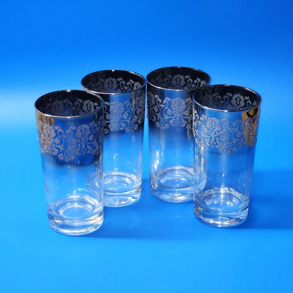 - Vintage Queen’s Vitreon SILVER FADE 5.5” Iced Tea Highball Tumbler - Set Of 4