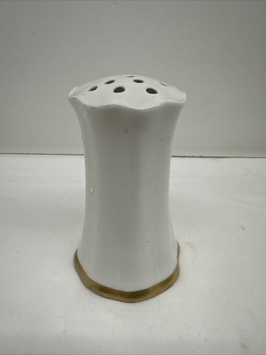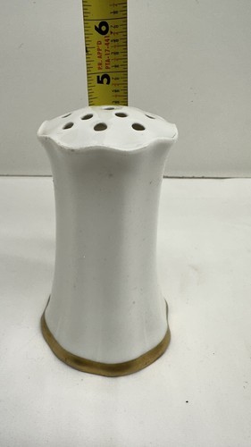 VINTAGE R S GERMANY WHITE AND GOLD PORCELAIN HATPIN HOLDER 4-5/8" HIGH