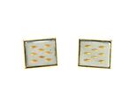 Simple cufflinks in a black square of what looks like obsidian with cuts down into the gold and framed and backed by gold (gold-tone). Cuff links measure 5/8? x 1?. Photo shows item larger than life.