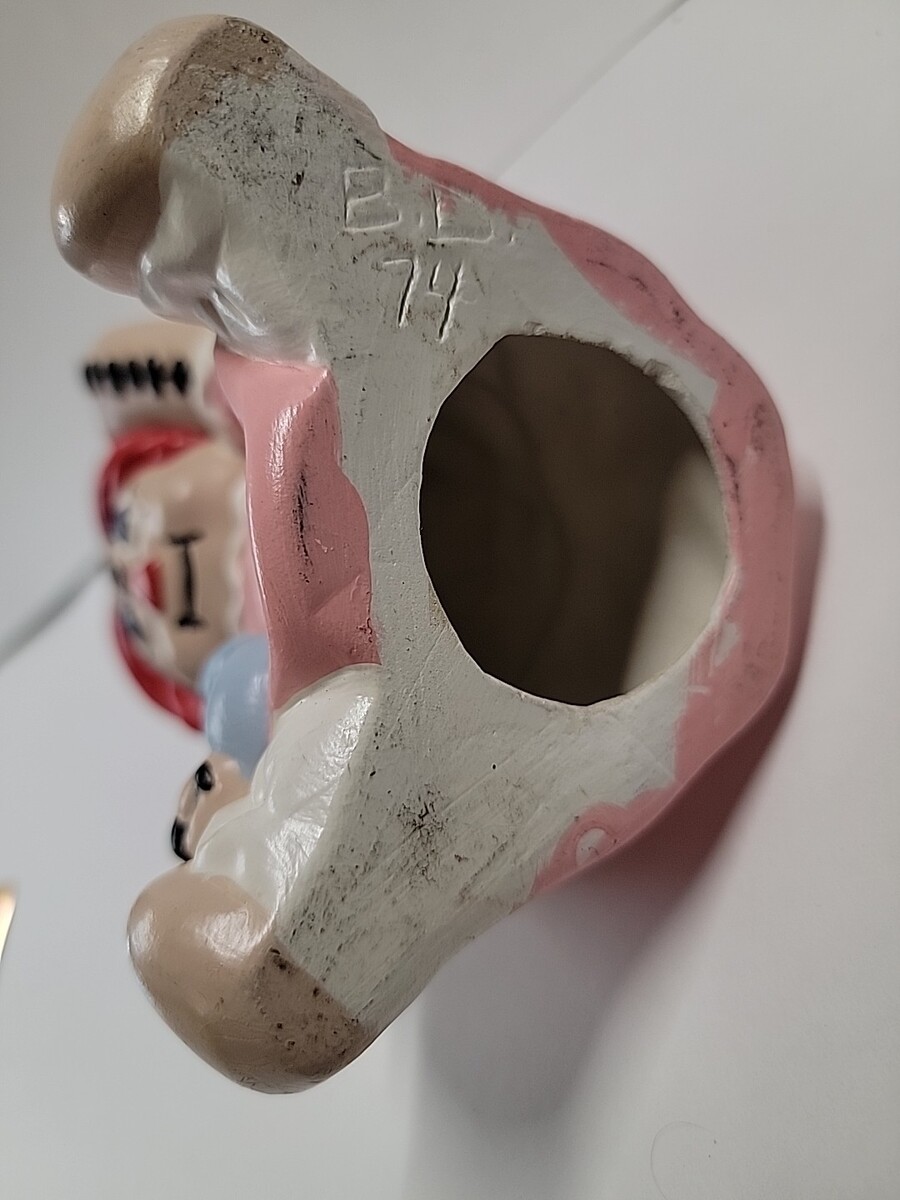 This was from the '70s a lot of kids painted them themselves this was purchased at an estate sale says BD on the bottom has minor stains and scratches from each