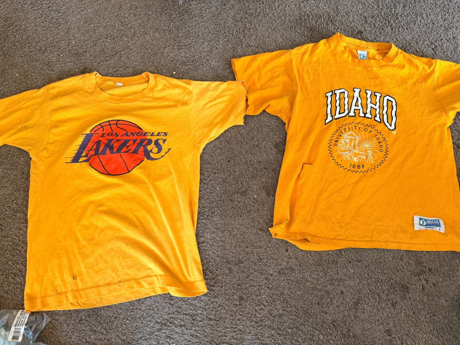 - Vintage Rare Lot De 2 90s 80's T-Shirt la Lakers University Idaho Jaune S M