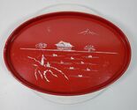 - Vintage Red Oval Wood & Mother of Pearl Serving Tray 18 Inch Long