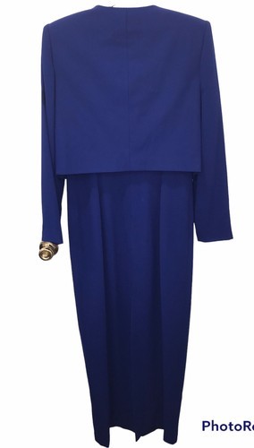 Vintage Rimini By Shaw 2 Piece Long Dress Gown size 10 W/ Jacket Blue Embroided