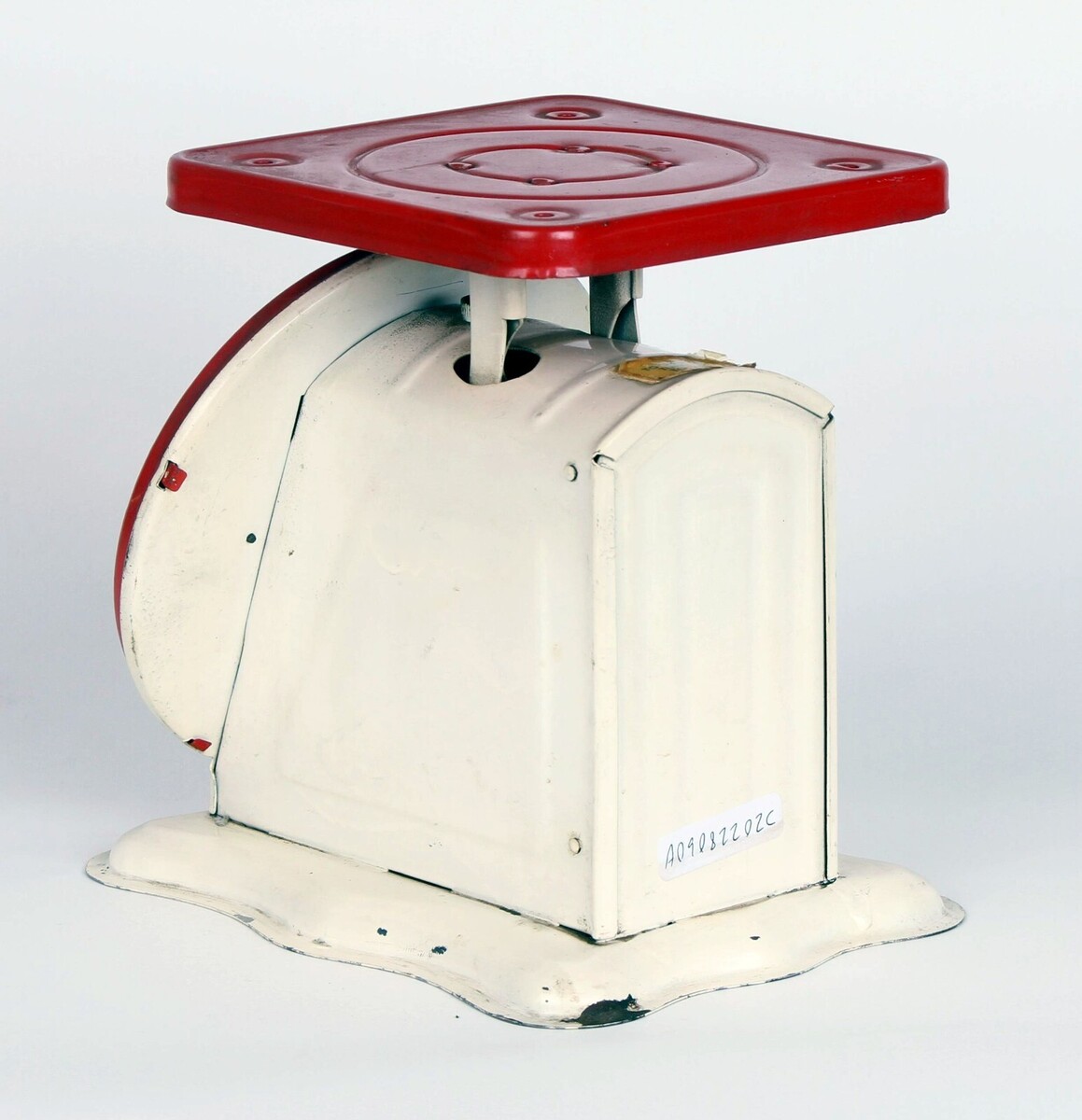 - Vintage Rouge/Blanc Américain Famille Échelle Co.25 Lbs Ménage Échelle