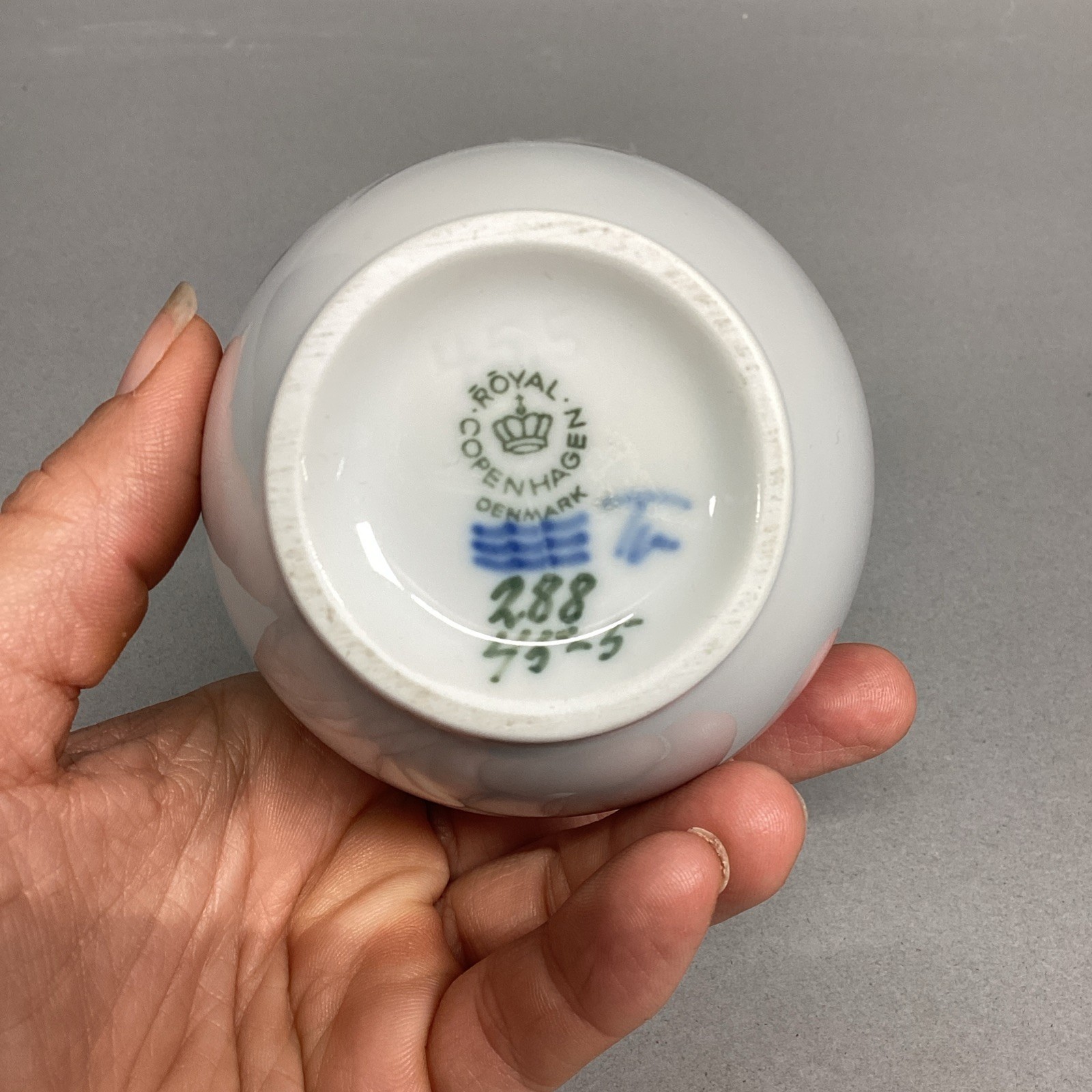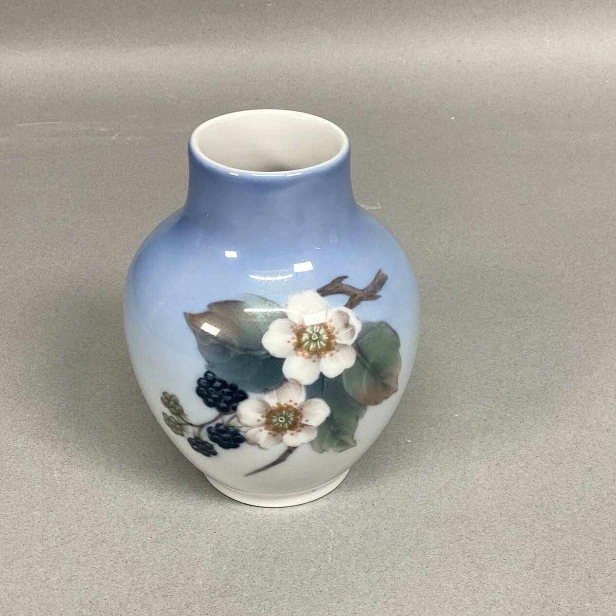 Vintage Royal Copenhagen Blackberry, Fruit Flowers Vase - 4?H. Vase is in very good condition. Top opening measures 1.5?D. Base diameter is 1.75?D