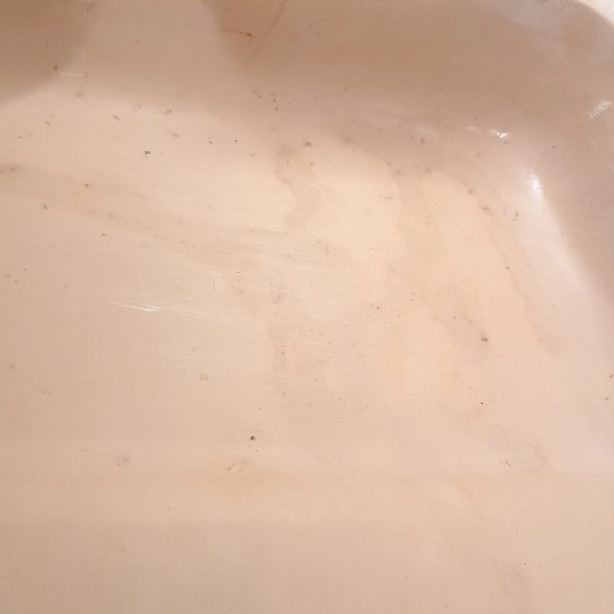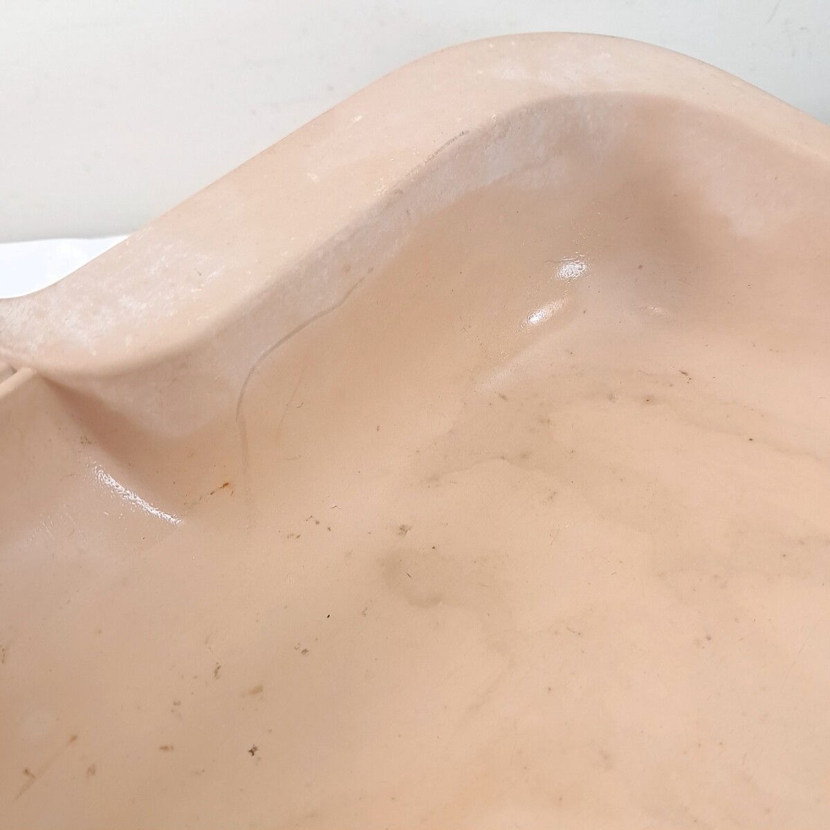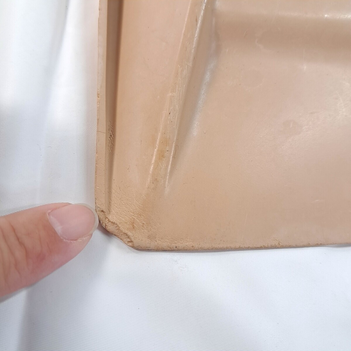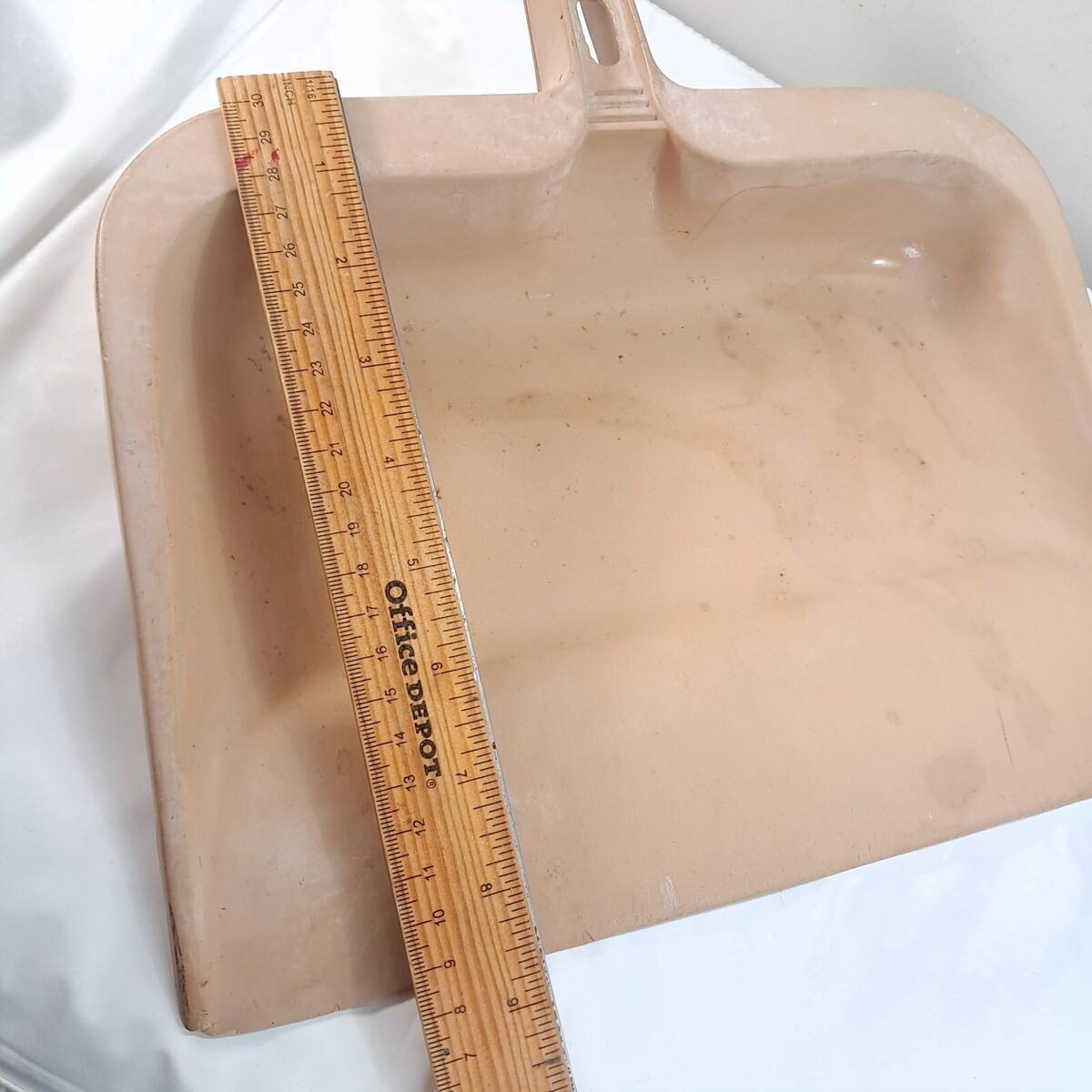 Vintage Rubbermaid DUSTPAN Dust Pan Heavy Rubber 2001-20 almond tan cream Wear/marks/discoloration as shown. Some cracking to the handle and small chips missing from the bottom as shown. Large flat edge. Heavy duty. See pics.