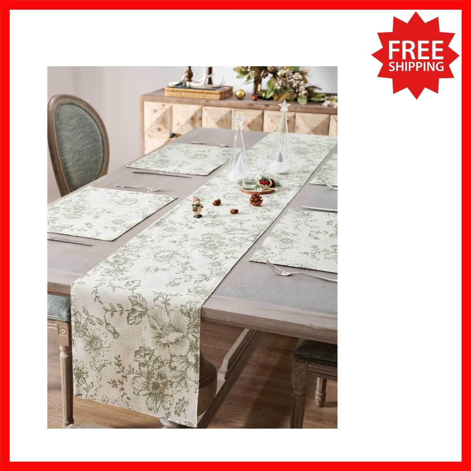 Elevate your dining experience with the JINCHAN farmhouse floral table runner. Crafted from high-quality linen blend fabric, this 13x72-inch piece features a vintage flower print that adds a refined and charming touch to any decor. Its lightweight design ensures durability and easy maintenance?machine washable and simple to care for. Perfect for holidays, events, or everyday use, it transforms your table into a statement of style and elegance. To ensure fast and reliable delivery, we work with multiple fulfillment partners and suppliers. Depending on availability and location, your order may ship from different warehouses or arrive in packaging that varies from item to item. Tracking details are typically provided shortly after shipment, and customer satisfaction remains our top priority. Please note that due to carrier policies and regional regulations, certain items may not be eligible for delivery to specific states or territories.