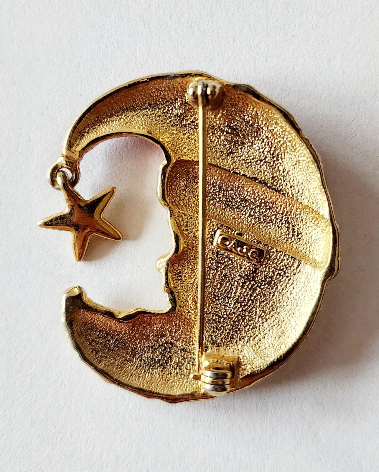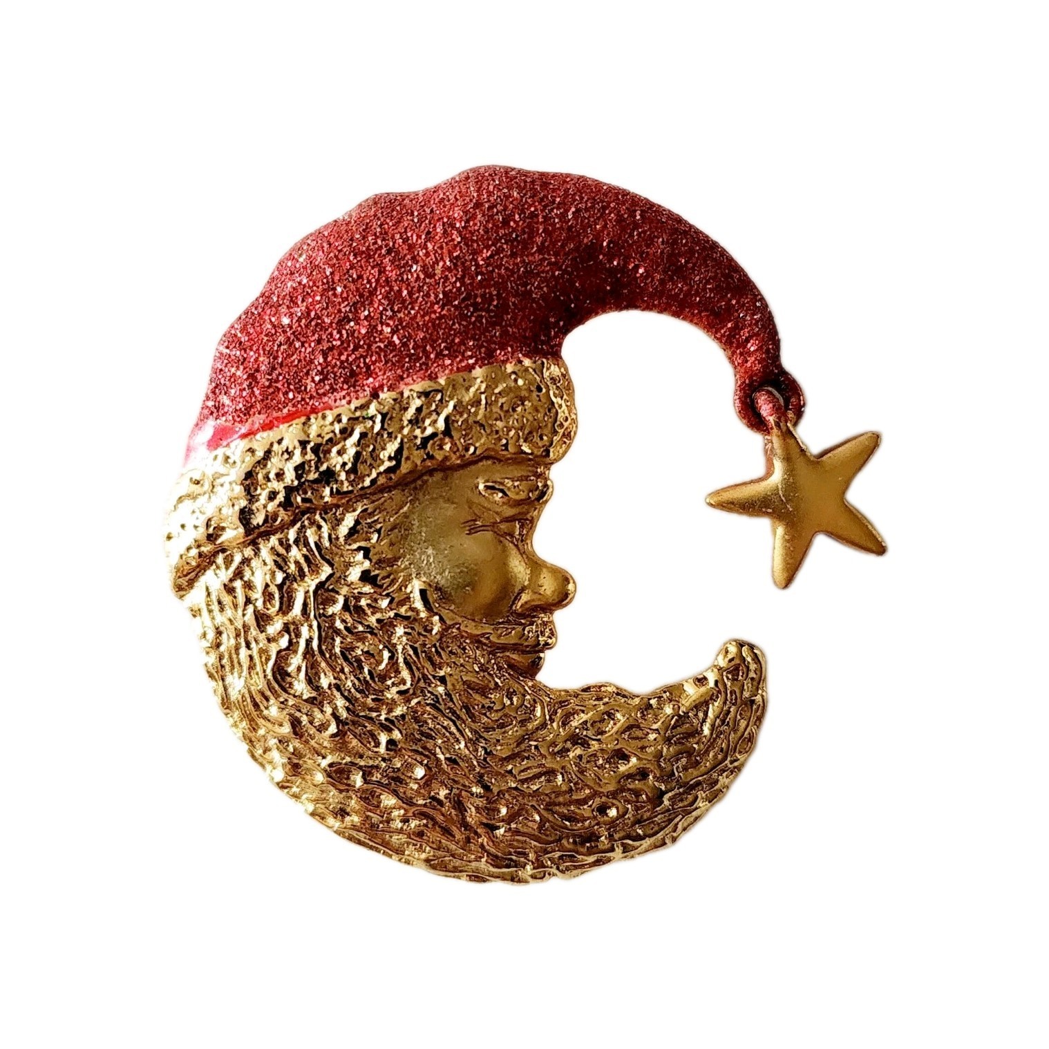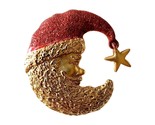 - Vintage Santa Claus Brooch Pin AJC Makers Mark Gold Tone Glitter 1.75" F7A