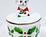 Primary image for Vintage Santa Mouse w Wreath Christmas Trinket Box x Holly & Spaghetti Trim