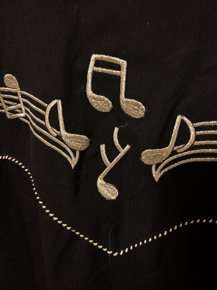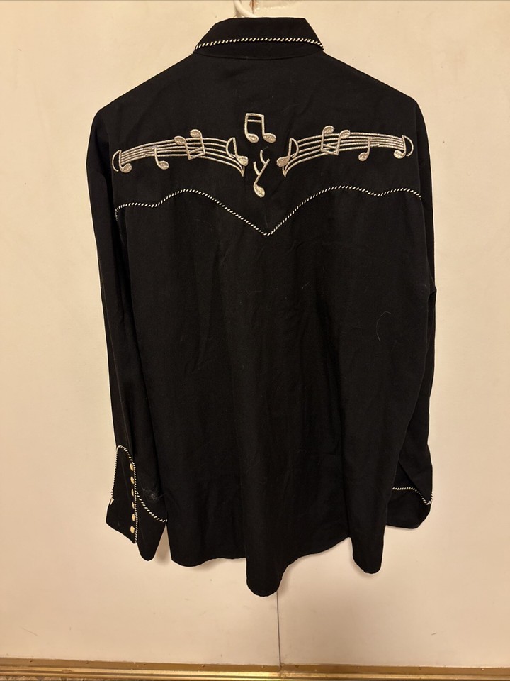 Vintage Scully Black Embroidered Pearl Snap Western Shirt mens large