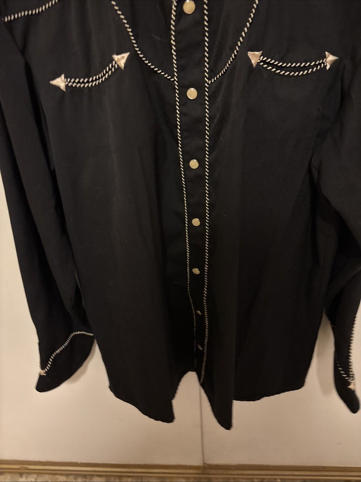 - Vintage Scully Black Embroidered Pearl Snap Western Shirt mens large
