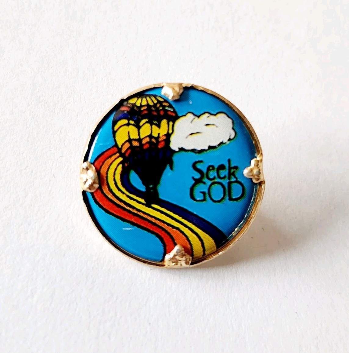 Vintage Seek God Pin Hong Kong NOS Rainbow Hot Air Balloon 1" Religious F7F2