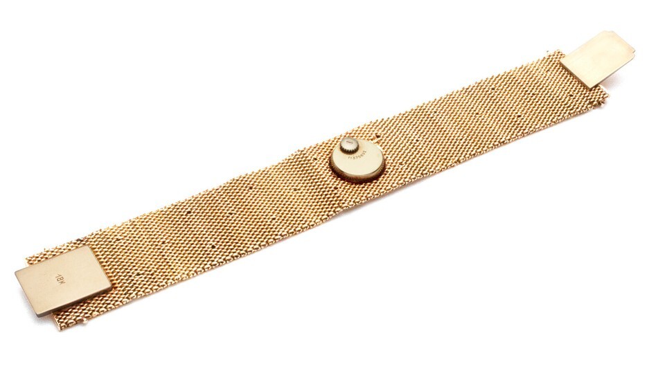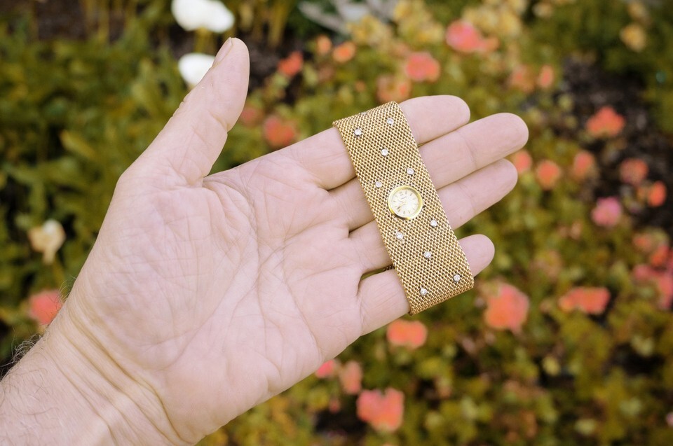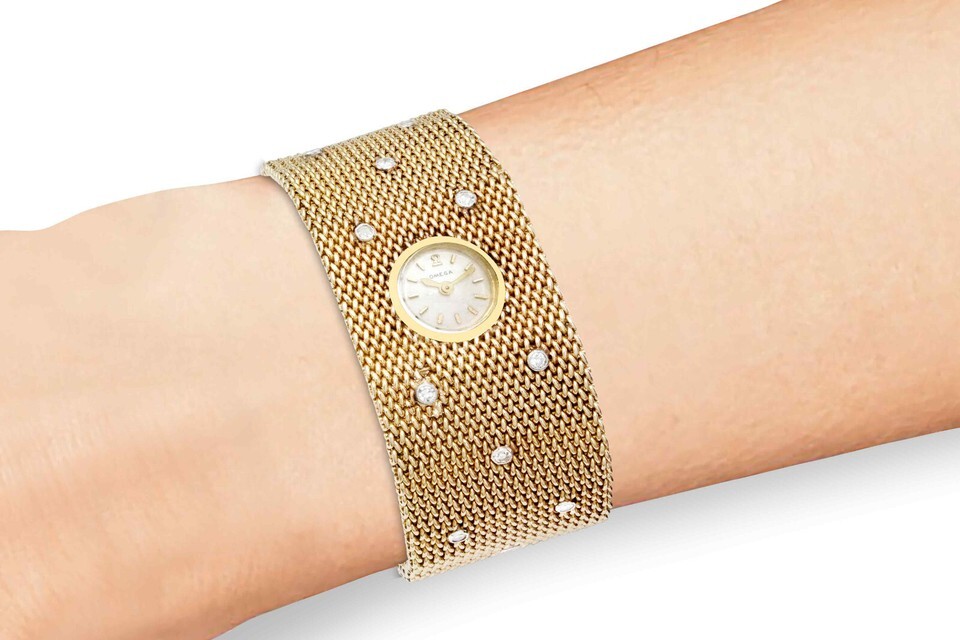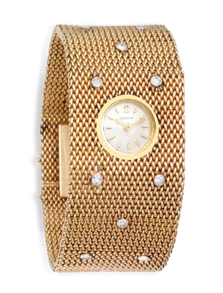 (One) Omega 18K Gold Women?s watch mesh watch with 25 diamonds. Automatic mechanical. Serviced.