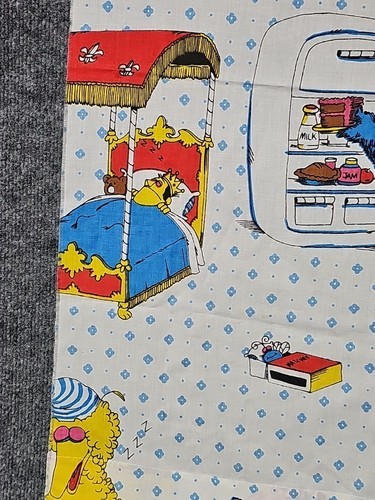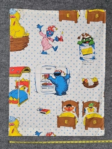 UP FOR SALE: Vintage Sesame Street Muppet Characters Muppets Inc Sheet Fabric Piece 33 in x 25 in Up for sale is this Piece of a vintage Sesame Street Twin Size Flat Sheet. The Sheet was used to make a curtain for child's room so it has been hemmed. Made out of 65% Polyester 35% Combed Cotton Blend materials. The Piece is in Great condition with no rips, tears, holes, fading, etc. Permanent Press No Iron PLEASE REFER TO ALL PHOTOS FOR A BETTER VISUAL DESCRIPTION OF THE ITEM *Vintage and secondhand items may have flaws. Please review item(s), description and picture(s). I do my best to research and describe the items accurately, but I am not an expert on all of the items I sell. Unless specified in the listing, all items are sold AS-IS AS-SEEN in photos* All of My Items Come from a Smoke Free Home and have been cleaned per's standards I do Ship everyday Monday - Saturday I am always happy to combine shipping for you--just send me a message Feel Free to Visit My Store and Browse Through My Other Listings as I am happy to combine shipping for you. Please contact me with any issues prior to leaving negative/neutral feedback or low detail ratings, as I will always do my best to solve any problems that may come up! If you have any further questions, please feel free to message me Any props that are used in the taking of the photos are not included. Only the item/items in the title of the listings are being sold