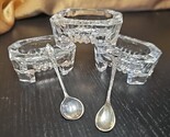 Primary image for Vintage Set of 3 Open Footed Crystal Salt Cellars with 2 Two 925 Silver Spoons