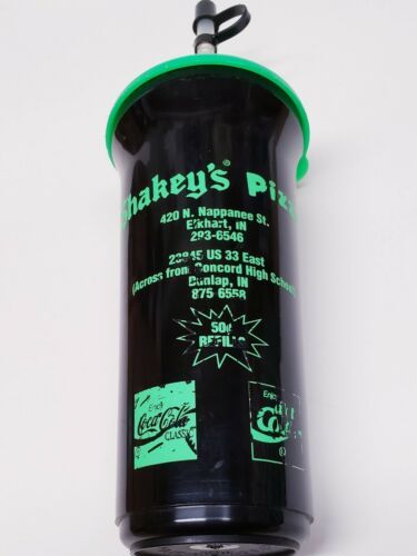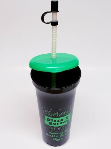 Vintage Shakey's Pizza And Buffet 32 Oz Travel Sport Cup W/ Lid Straw Rare OOP. Condition is "Used". Shipped with USPS First Class. This Shakey's Pizza cup is in good condition considering it's age but does show multiple signs of wear including dings scratches and marks and some of the print is worn away. This cup is very rare and highly collectible. Message me if you want Priority Mail Express added for expedited shipping.
