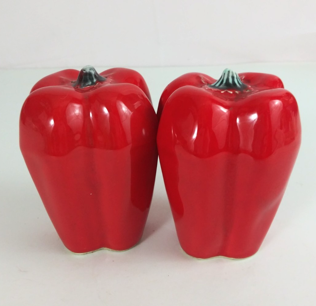 Vintage Shiny Red Bell Pepper 3.5" Salt & Pepper Shakers