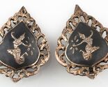 Vintage Siamois Argent Sterling Et Niello Gravé Filigrane avec Clip Oreilles