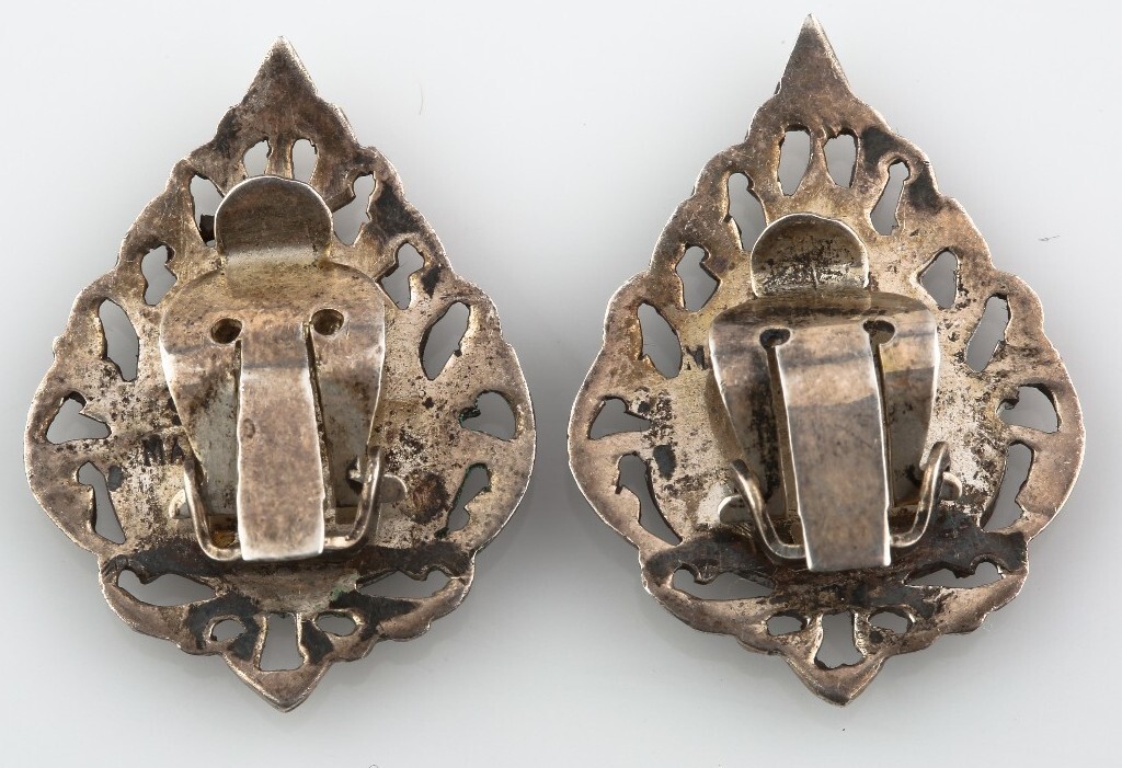 Boucles d'oreilles siamoises en argent sterling vintage niello Presente des figures de noullo a la gamme d'une deesse thaïlandaise entouree de filigrane Sterling .925 Silver 1,25 "x 1" 9,6 grammes Voir correspondant BROCHE ET TROIS DIFFERENT Bracelets Dans notre MAGASIN! BEAUCOUP! Certificat d'evaluation non inclus * Les exigences douanieres pour chaque pays, y compris tous les droits d'importation, les taxes et les frais, sont la responsabilite de l'acheteur. Tous les packages internationaux auront la declaration et la valeur de commande requises. Acheteurs de Californie: Une taxe de 9% sera ajoutee Veuillez nous appeler avec toute demande: Continental Coin and Jewelry Company Web Departement: lundi au vendredi, de 10 h 30 a 18 h PST Element de reference #AV-1263 1/15/14 JP