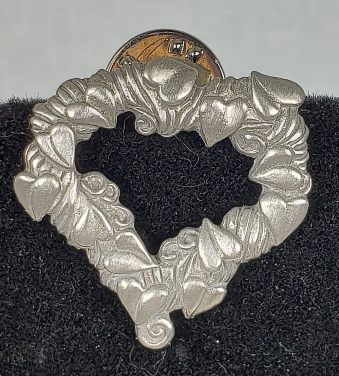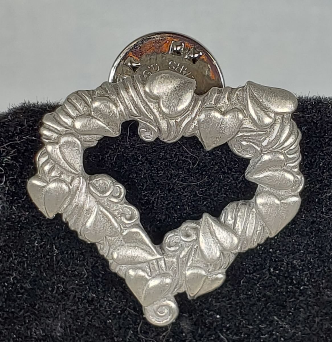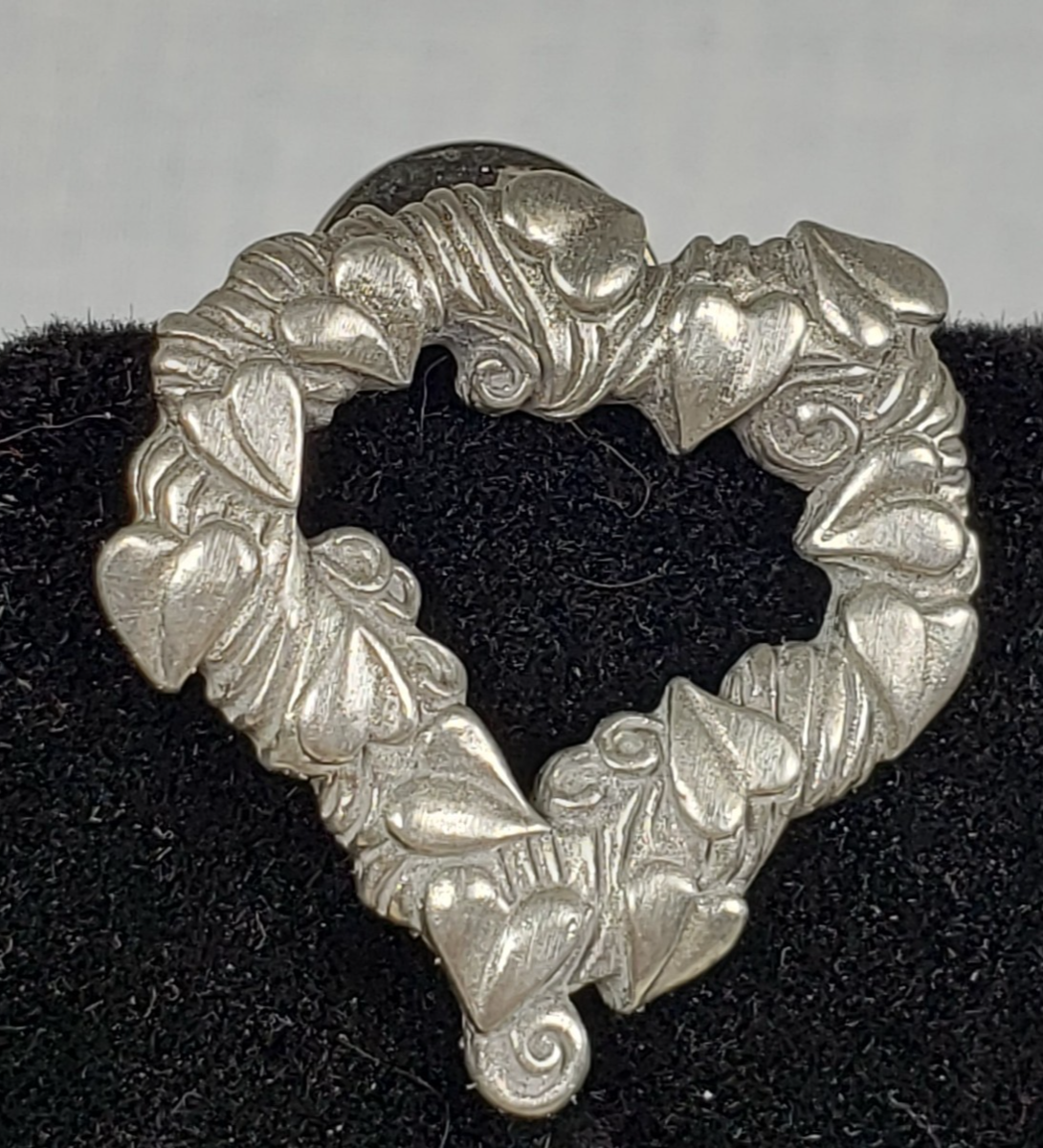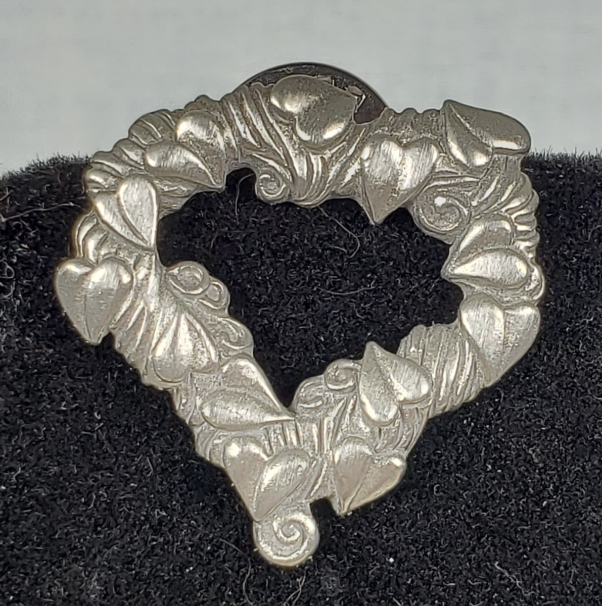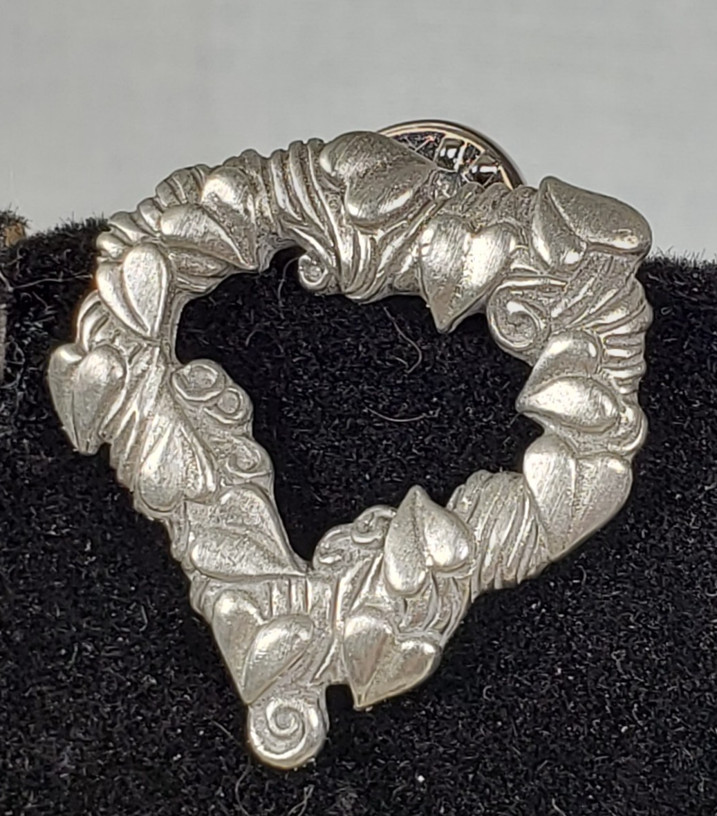 - Vintage Signed LCD Pewter Heart Ivy Pin