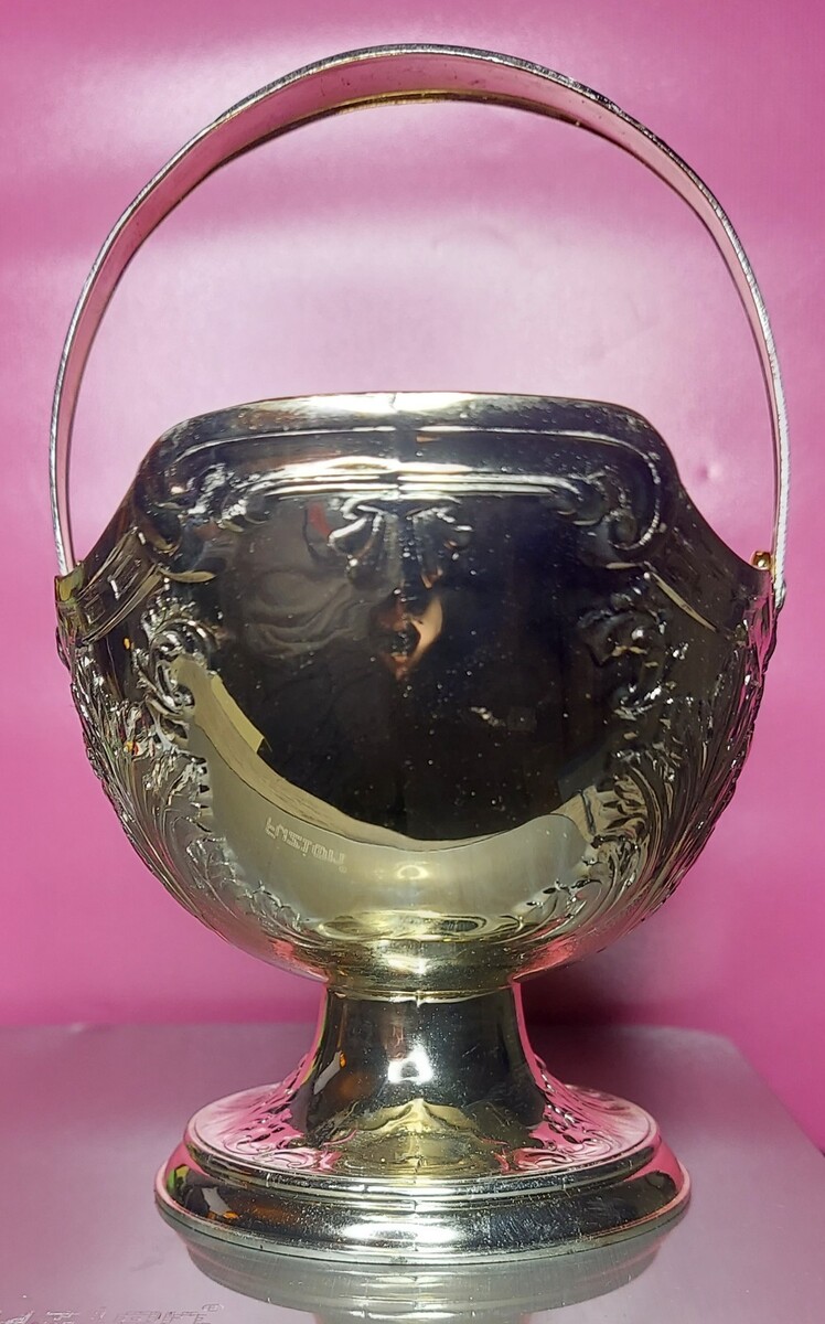 Vintage Silver-Plated Goldwashed Interior Handled Basket