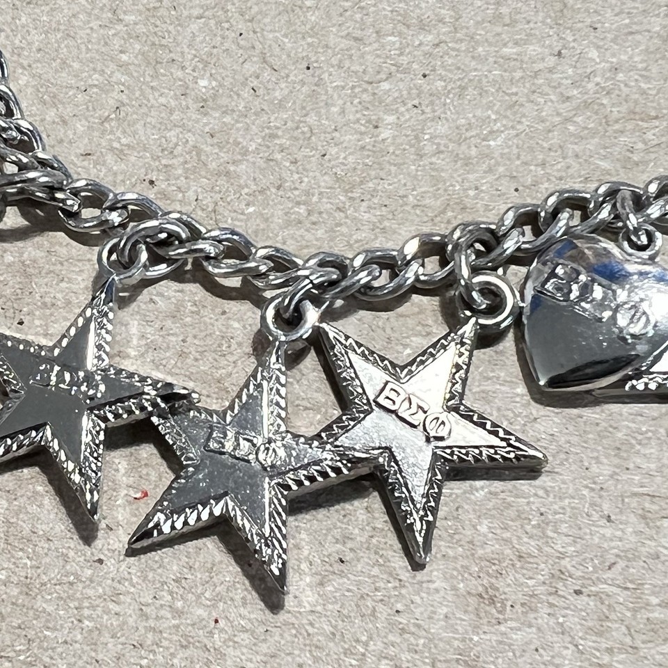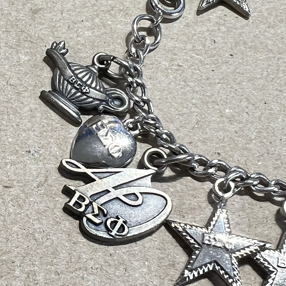 - Vintage Silver Tone Beta Sigma Phi Charm Sorority Bracelet 1970s