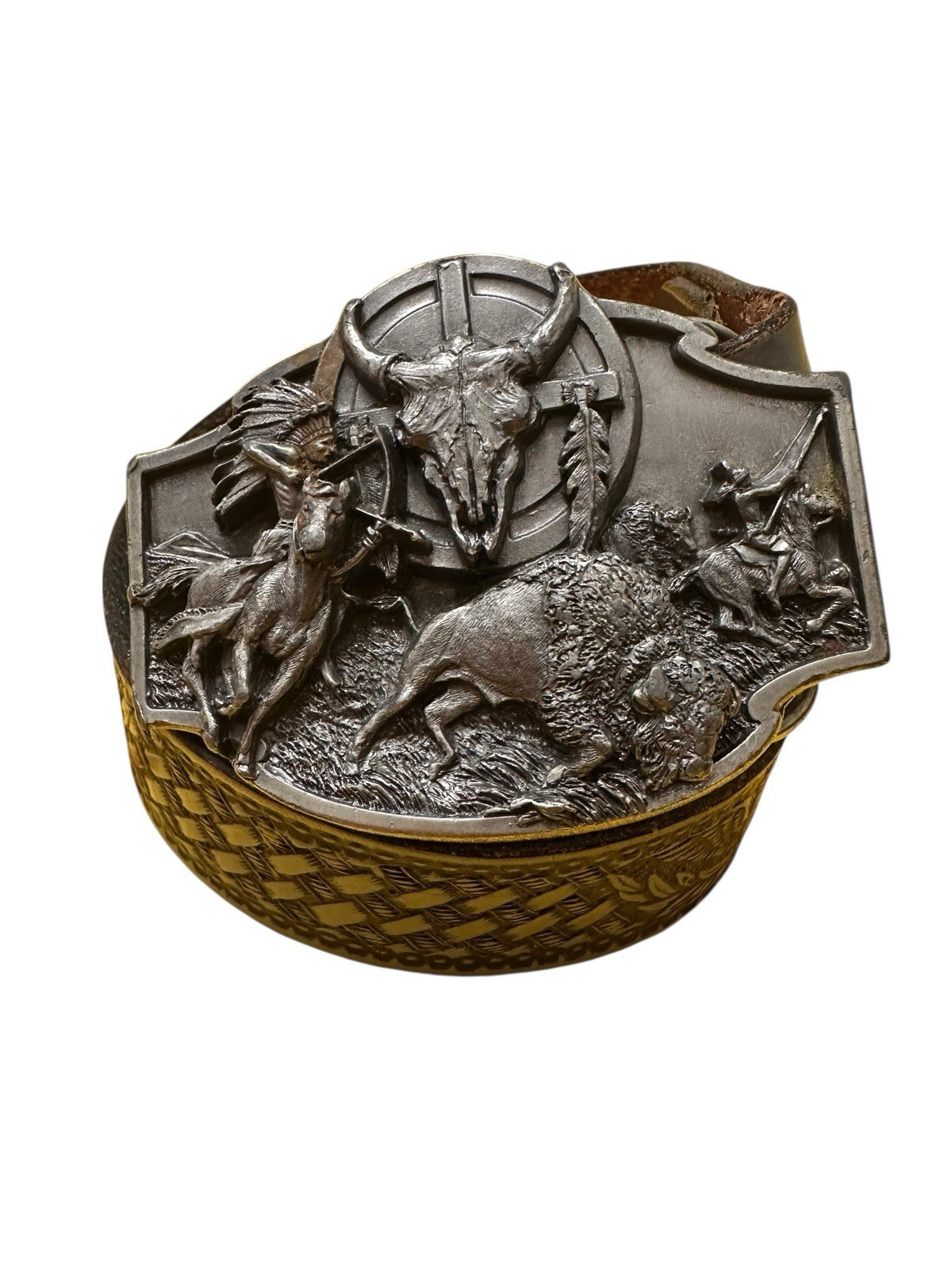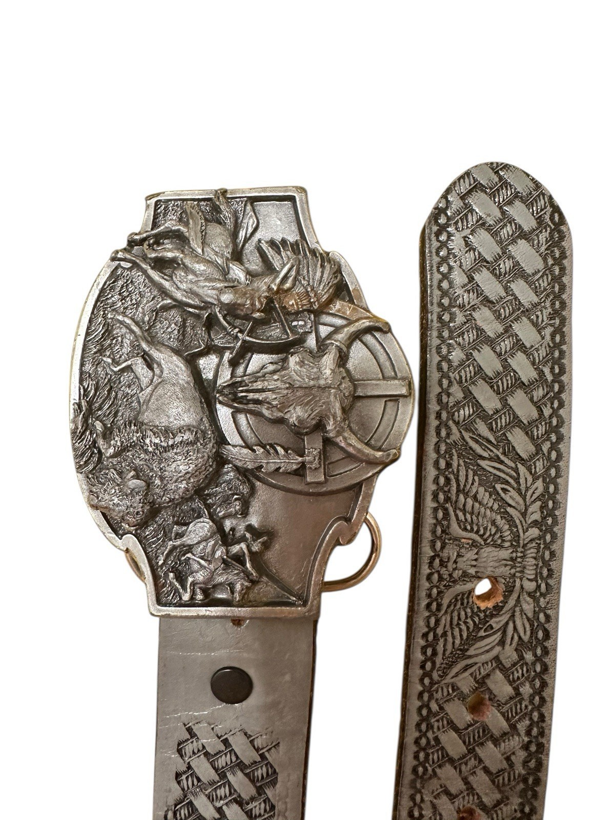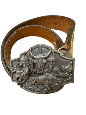 - Vintage Siskiyou belt buckle w/Brushy Creek Leather Belt Eagle Buffalo Native Am