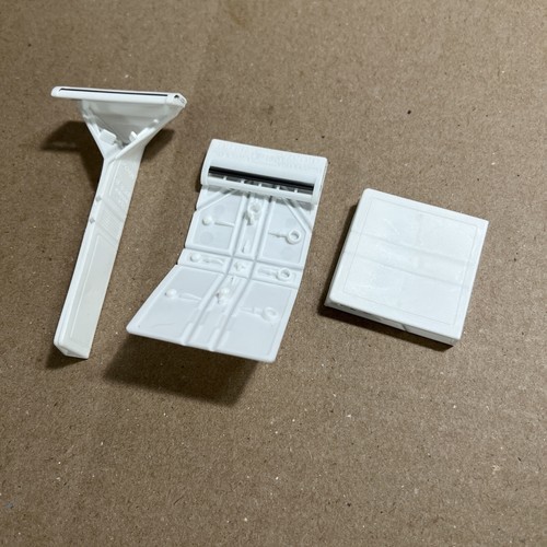 The unpacked ones in the last two photos are not included, that is just to show the product that is in the package. You take it out folded as a square, unfold the package and then snap the sides together to make a razor.