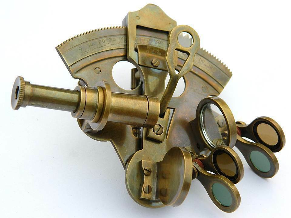 This round sextant can be placed on any desk, table, shelf, or display case to add a carefully constructed conversation piece to your home, office, or boat.