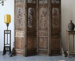 Product description: Transform your living space with this exquisite vintage solid wood folding screen, a masterpiece of traditional craftsmanship. Standing at an impressive 205x45cm per panel, this four-panel room divider showcases intricate hand-carved floral and geometric patterns through stunning hollow-out designs. The premium hardwood construction features a carefully distressed, antique finish that adds timeless elegance to any setting. This versatile piece serves multiple purposes - use it as a sophisticated room divider, a privacy screen, or a striking decorative backdrop. The folding design allows for easy arrangement and storage, making it perfect for living rooms, bedrooms, entryways, or studios. Each panel is meticulously crafted with latticed upper sections that allow light to flow naturally through the space while maintaining privacy. The screen arrives fully assembled, ready to enhance your interior with its Ming-style aesthetic. Whether you're creating distinct zones in an open floor plan, seeking an elegant photography backdrop, or adding architectural interest to your space, this movable partition seamlessly blends with various decor styles from traditional to contemporary. The solid wood construction ensures stability and durability, while the vintage finish adds warmth and character to your surroundings.