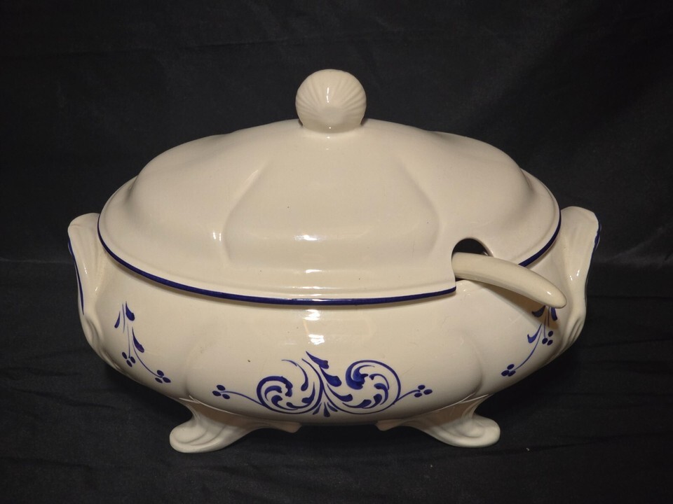 - Vintage Soup Tureen Lid & Ladle With Blue Scrolls LOUCARTE PORTUGAL Serving Bowl