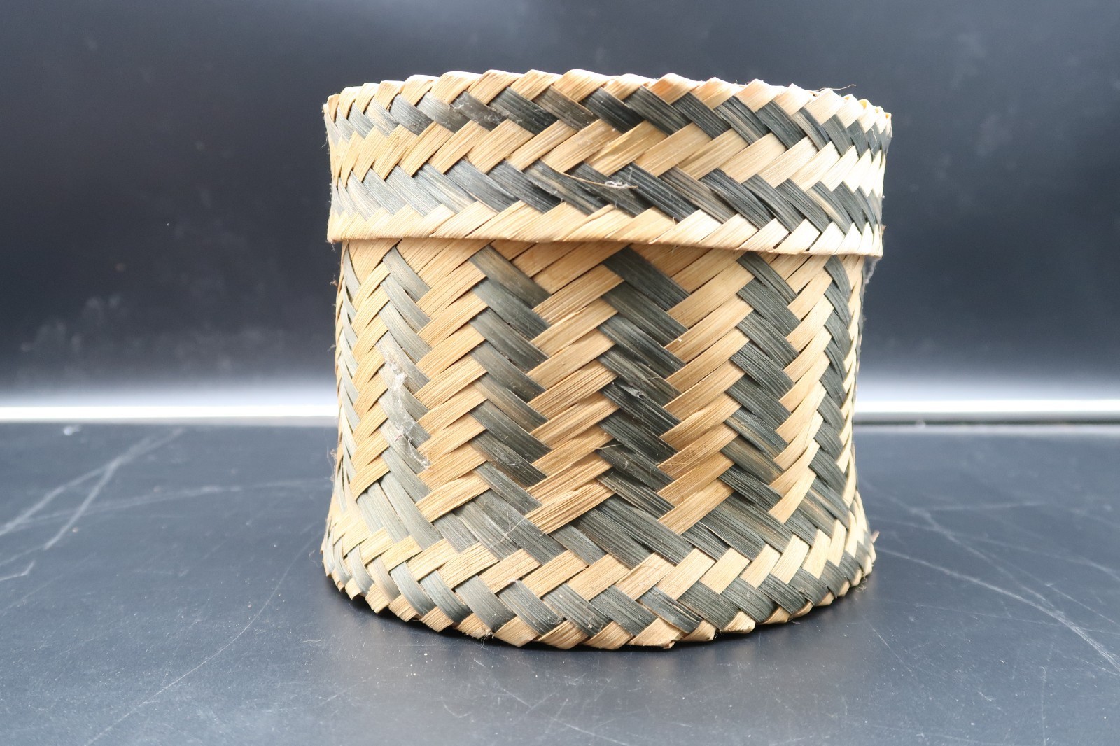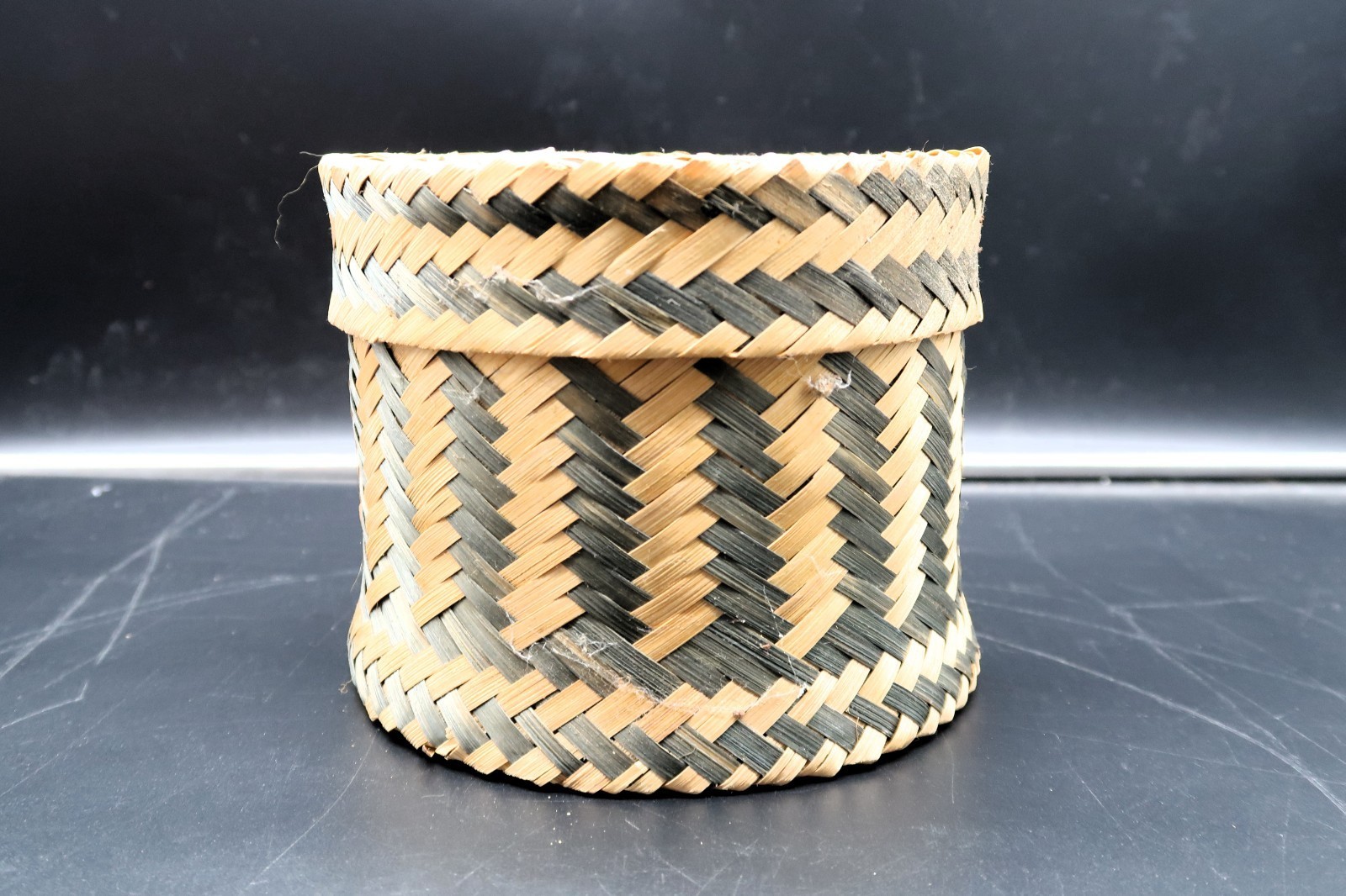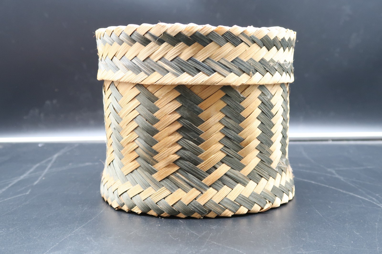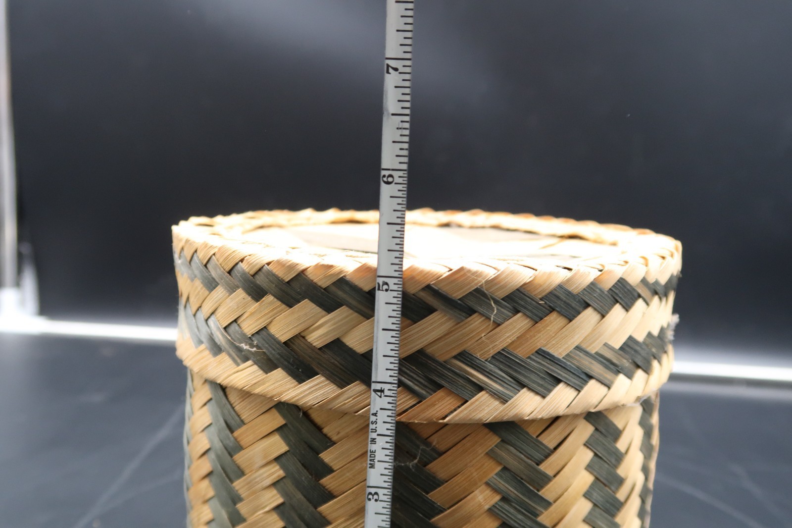 Vintage Southwestern Aztec Style Woven Basket Storage Lidded Optical Pattern 5"