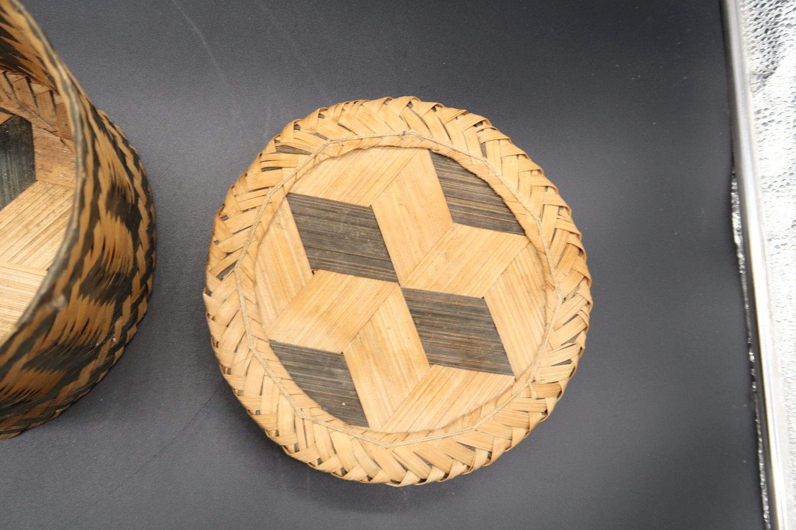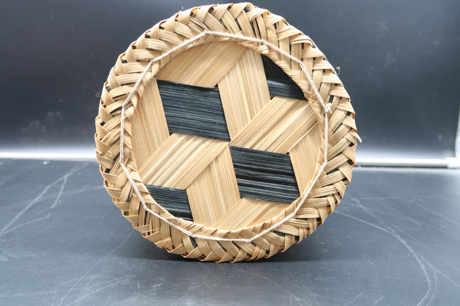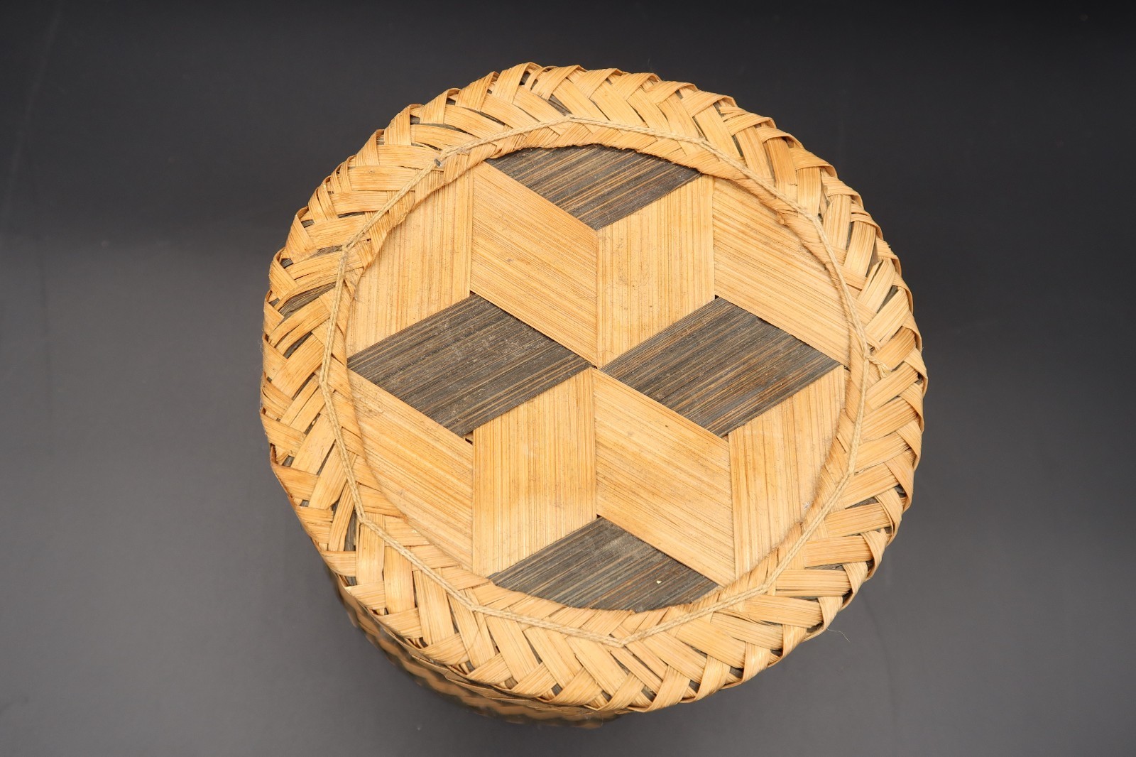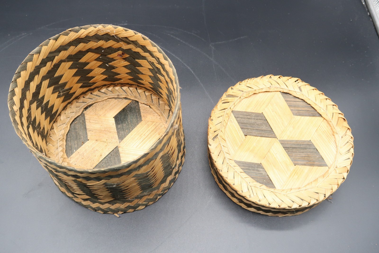 Vintage Southwestern Aztec Style Woven Basket Storage Lidded Optical Pattern 5"