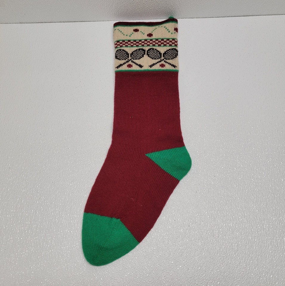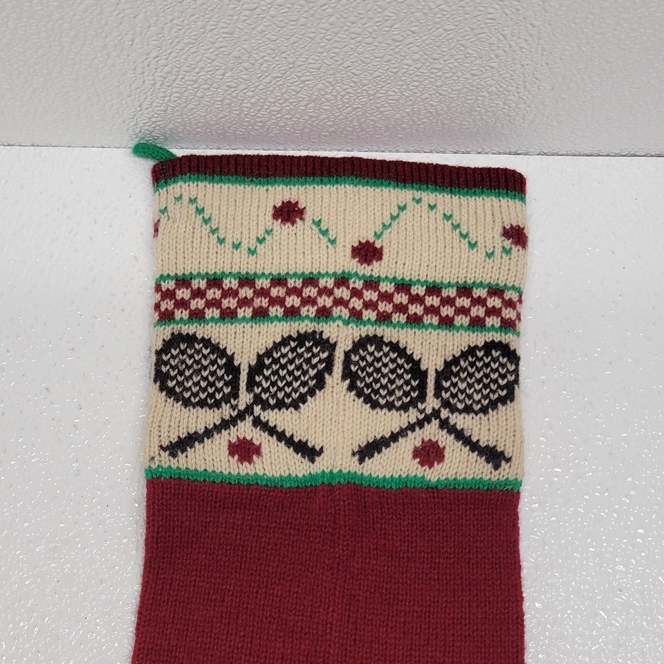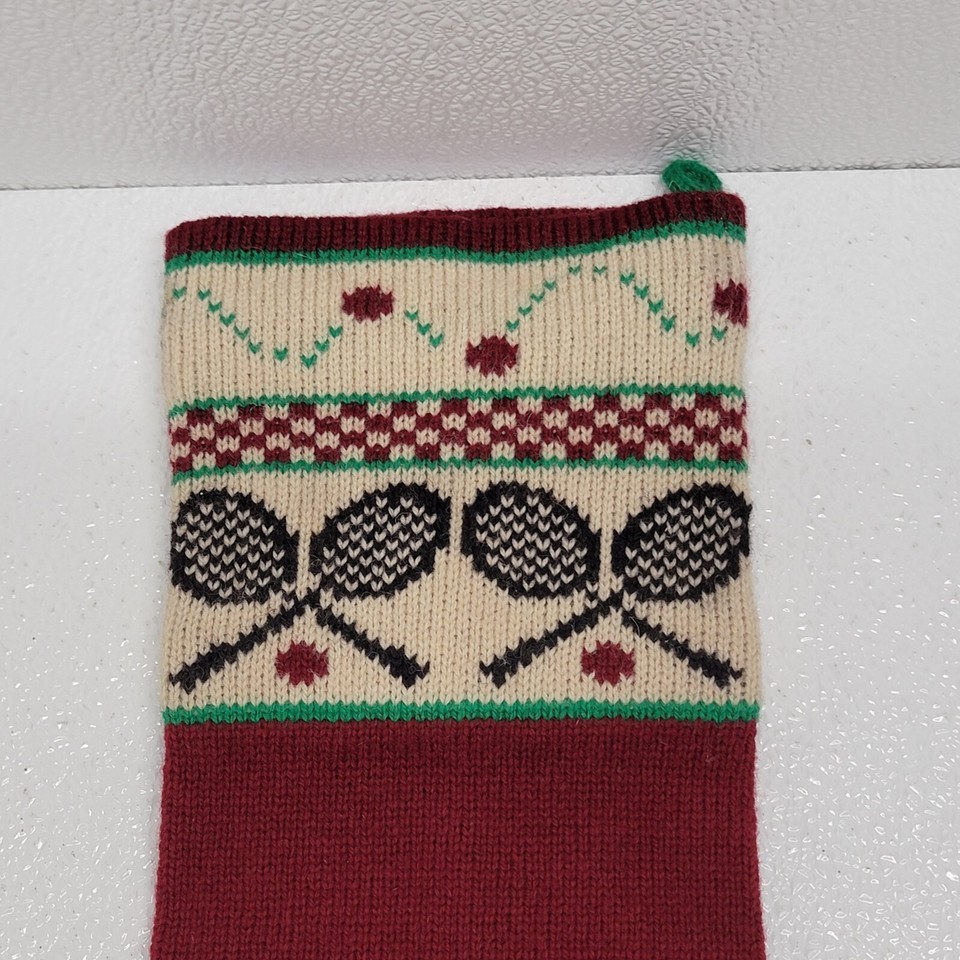 - Vintage Specialties in Wool Knit Christmas Stocking Tennis Design 100% Wool
