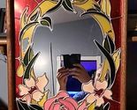 - Vintage Stained / Painted Glass Accent Wall Mirror Framed 25 x 17" - AS-IS READ