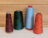 Vintage Standard Coosa Thatcher RARE SCT Sewing Machine Thread Lot of 4 Dating between 1930 and 1960 as far as my research tells me. SCT was one of many textile mills that dominated the economy and built their own communities of employees around them. At the turn of the 20th century the textile industry was expanding southward to provide increased local manufacturing for Southern cotton. With the introduction of electricity, the old water-powered mills of New England were becoming obsolete, and the railroads served growing transportation needs. In February, 2015, the remaining buildings of the Standard-Coosa-Thatcher Mills were added to National Register of Historic Places. Long deserted and obsolete, these Thread spools are no longer made and becoming rarer. 4 types. 1 has no tag. Blue, green, orange, burgundy. See pics for specifics Some have wear, fraying, light staining. More of a collectors item but still have thousands of yards of use left. Green spool is 12000 yds C59
