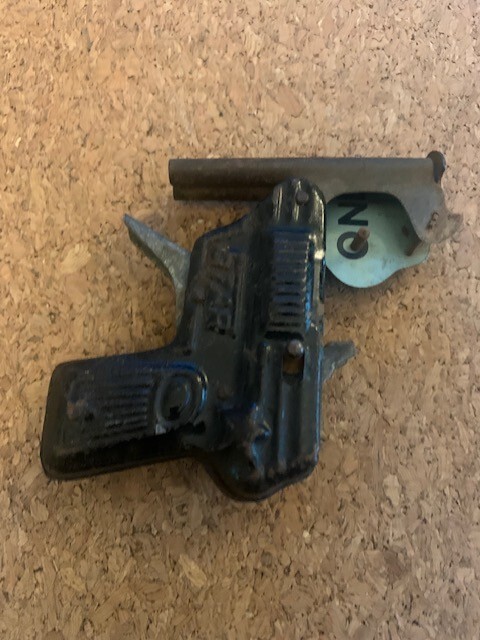 Vintage ?Star? Toy Cap Gun Double Barrel Pistol Tin Litho Made In Japan 3-1/2? Well used but solid. Some scratches, chips. Tarnish on barrels. Please refer to images.