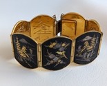 Vintage Sterling Japoneses Amita Damasceno Oro Hoja Incrustación Scenic Pulsera