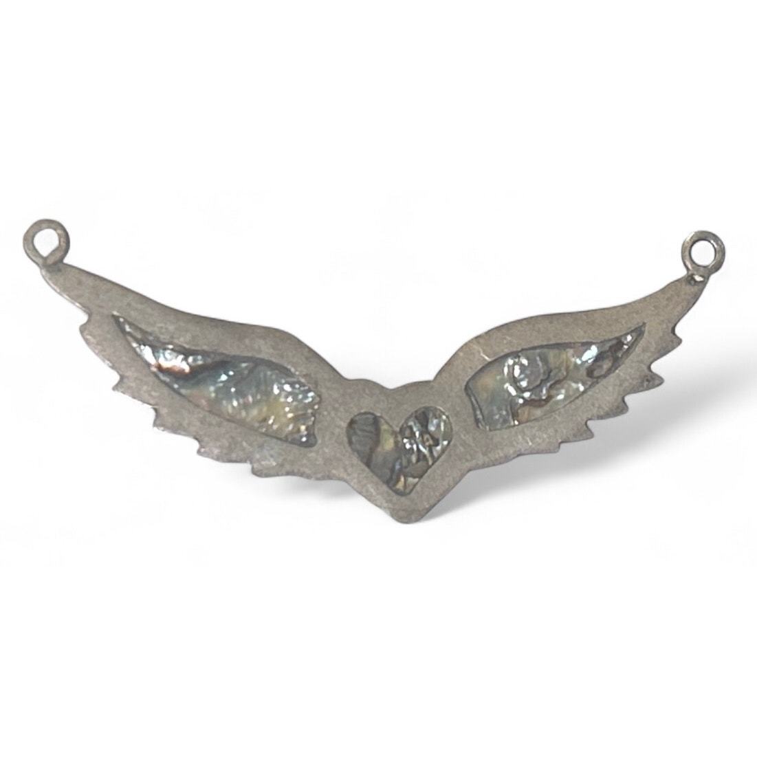 - Vintage Sterling Silver & Abalone Necklace Charm Pendant Wings/Heart