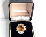 - Vintage Sterling Silver Citrine Ring with CZ Clusters