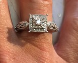 - Vintage Sterling Silver Filigree Diamond Promise Engagement Ring Size 6 1/4 CTW
