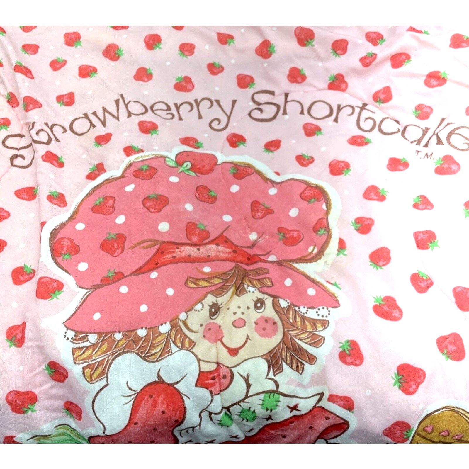 This vintage Strawberry Shortcake child-size sleeping bag features adorable artwork and sweet phrases like ?Sweet Dreams? and ?Happy Heart?, capturing the charm of the original 1980s character design. Made with a soft interior and colorful exterior, it?s perfect for sleepovers, camping, or display in a retro-themed kids? room. A must-have for fans of Strawberry Shortcake memorabilia, collectors of vintage children?s bedding, or anyone who loves nostalgic cartoon characters.