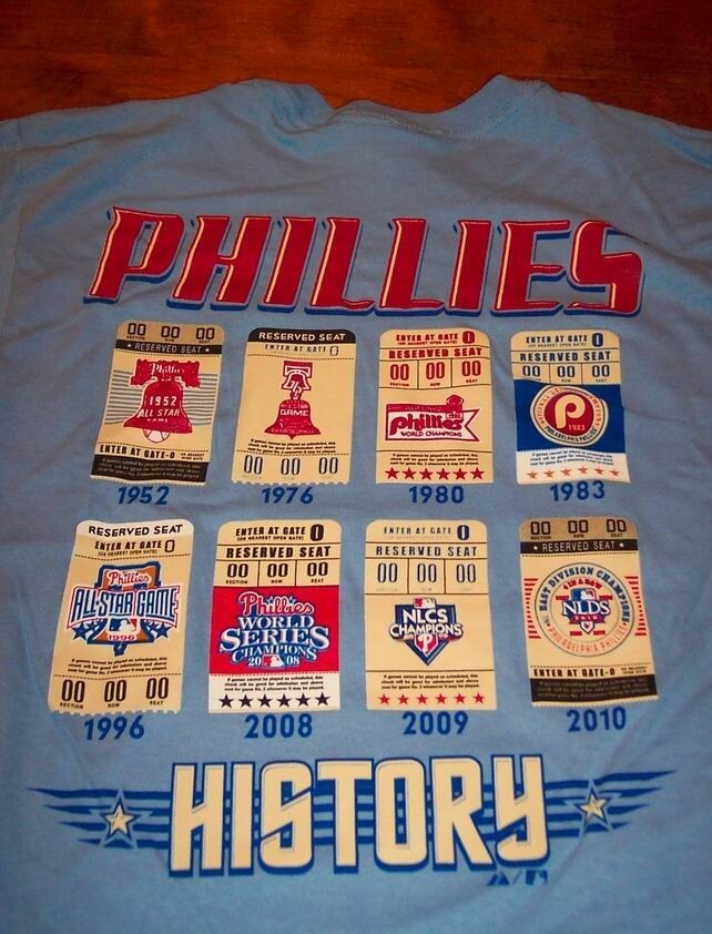 VINTAGE STYLE PHILADELPHIA PHILLIES HISTORY MLB BASEBALL T-Shirt MENS SMALL NEW