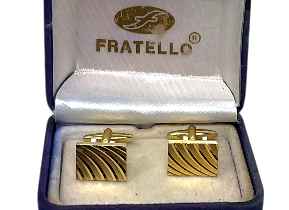 - Vintage Swank Gold Tone Rectangle Cufflinks – Textured Mid-Century Formalwear