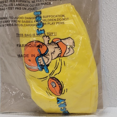 Vintage Swim Mate Wacky Football Fishel Yellow Inflatable Pool Toy - New NOS! Rare graphic with baby throwing a football! Images show actual item that will ship.