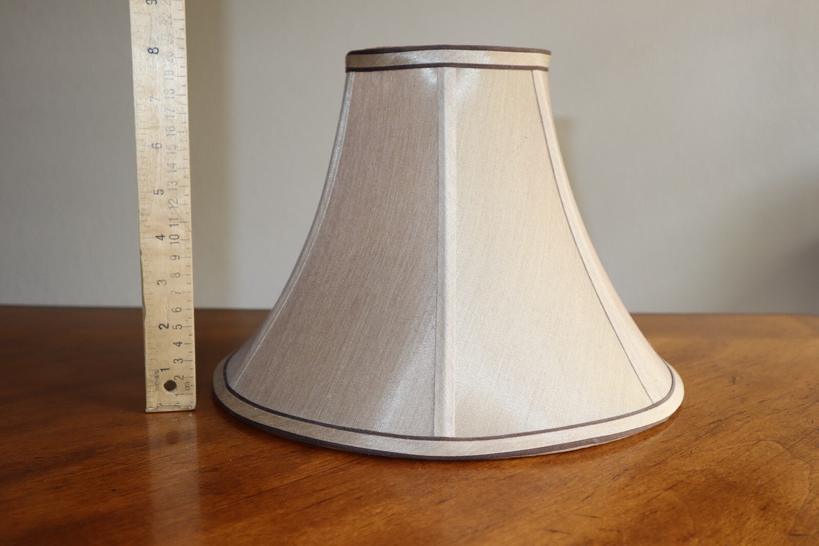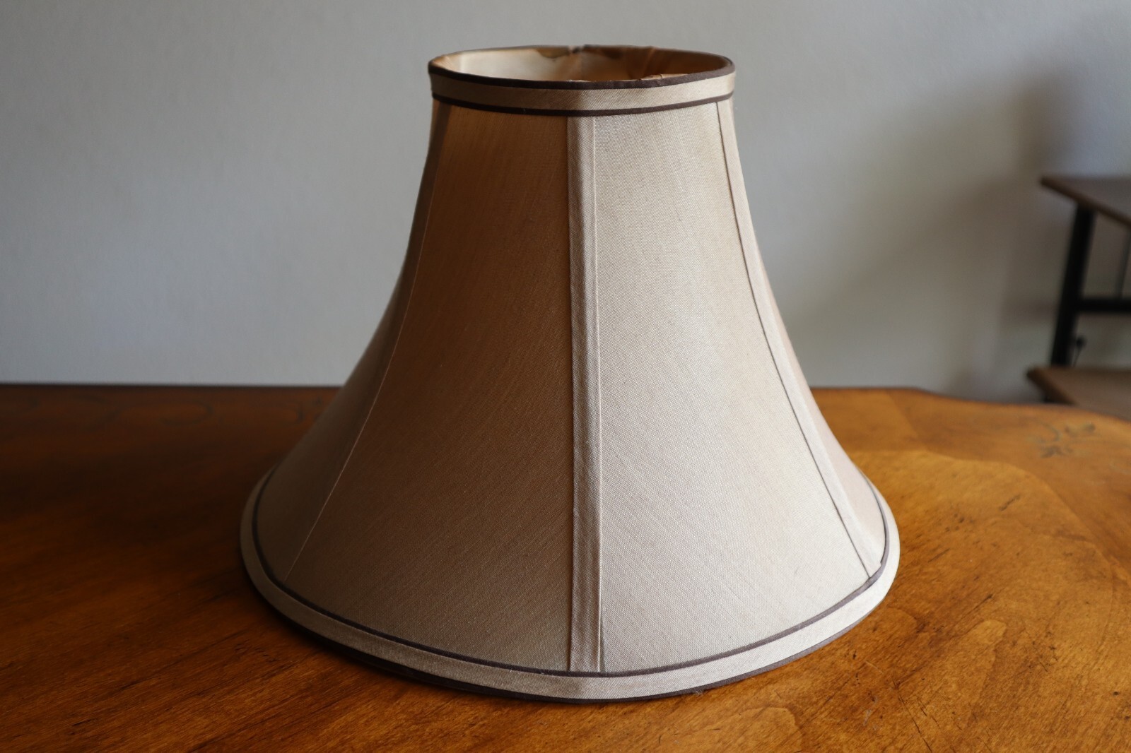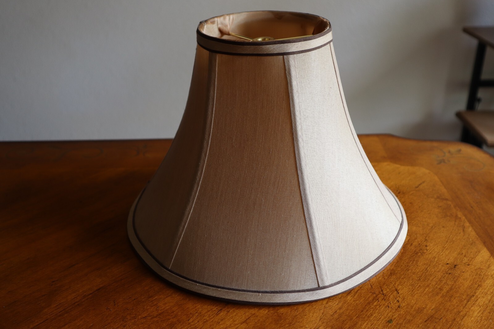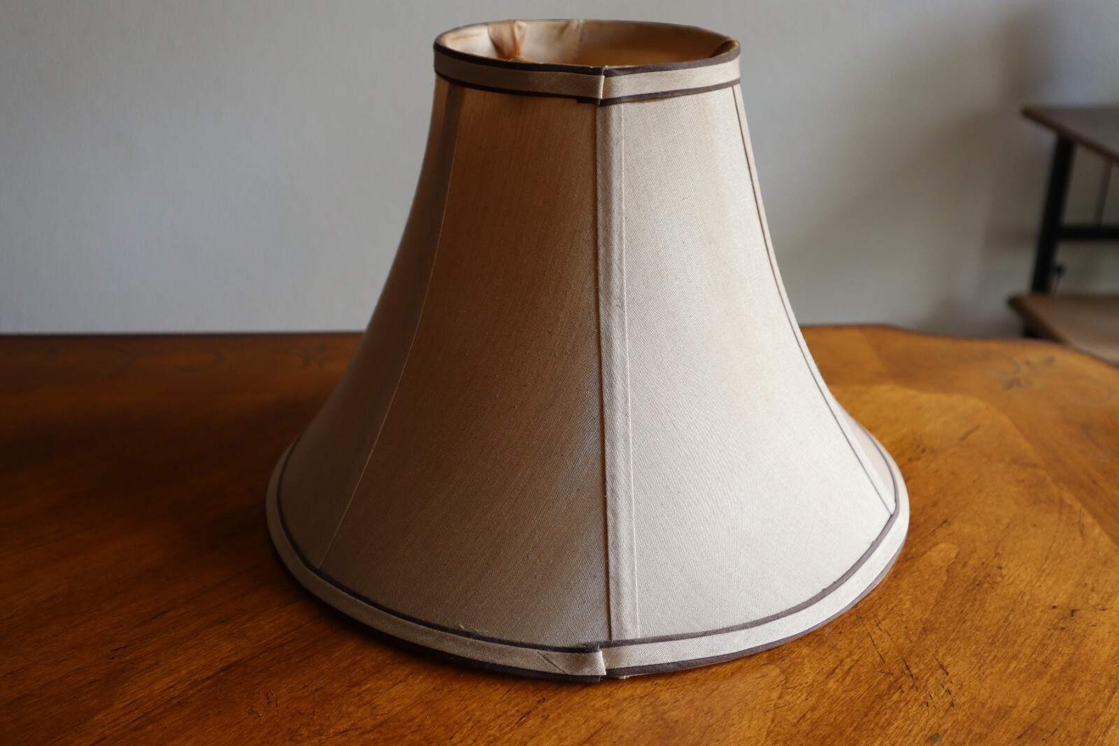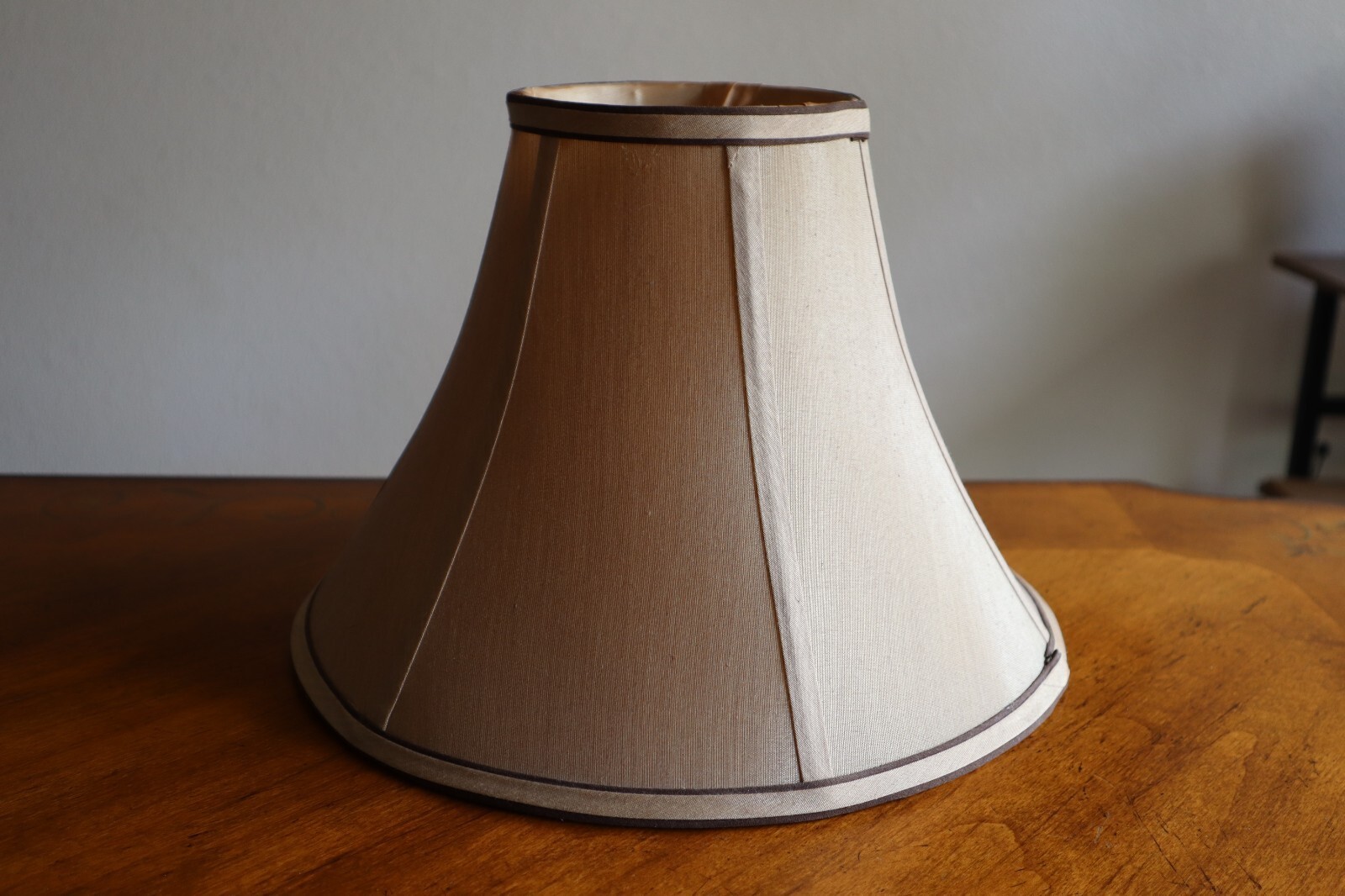 - Vintage Tan Silky Fabric Lampshade 8.5" Tall Round Bell Shape 6 Panels