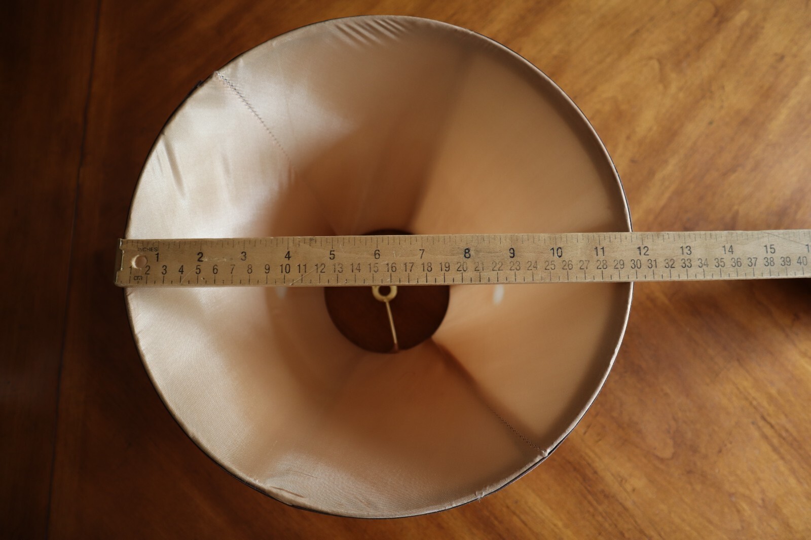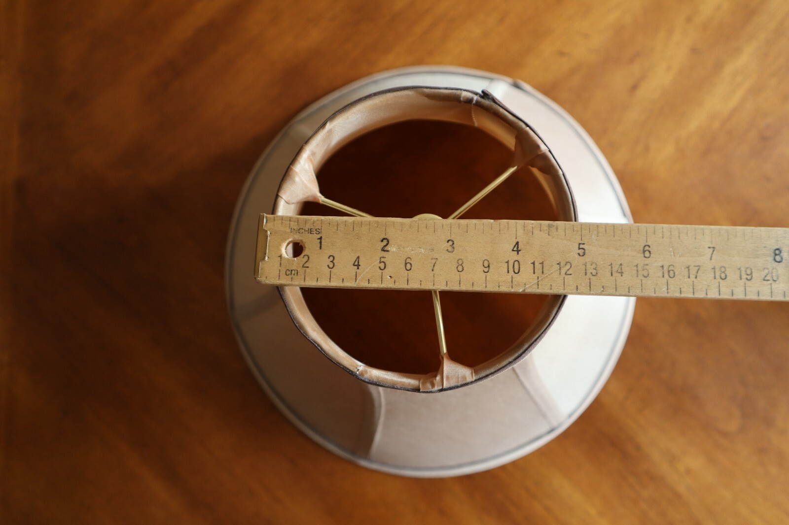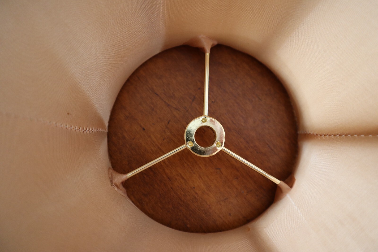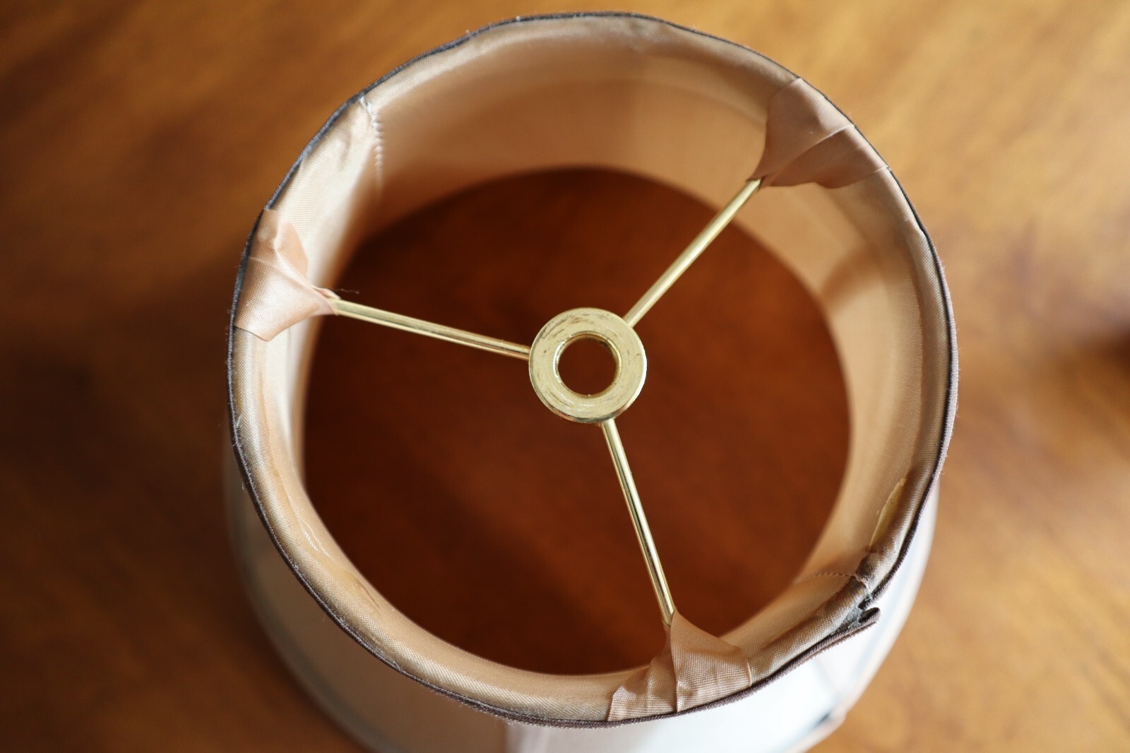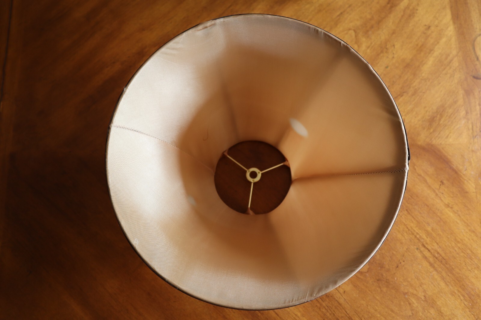 - Vintage Tan Silky Fabric Lampshade 8.5" Tall Round Bell Shape 6 Panels