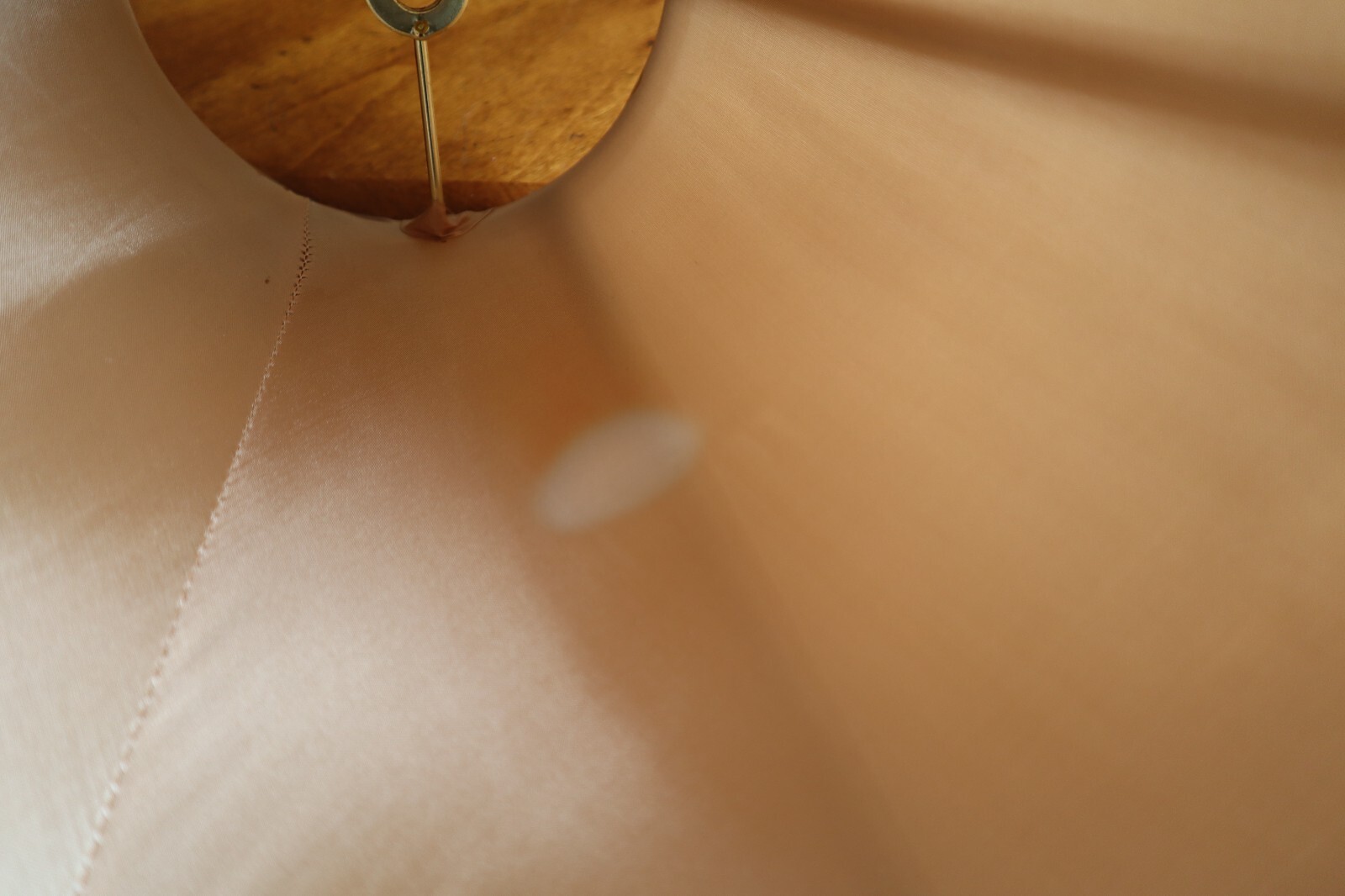Vintage Tan Silky Fabric Lampshade 8.5" Tall Round Bell Shape 6 Panels