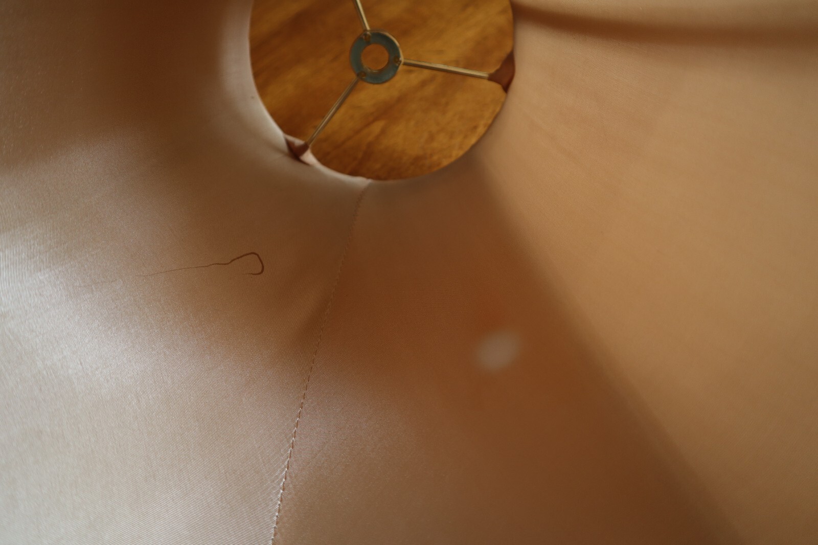 There are some spots with discoloration on the inside of the shade. I think they used a bulb that was too high in wattage.